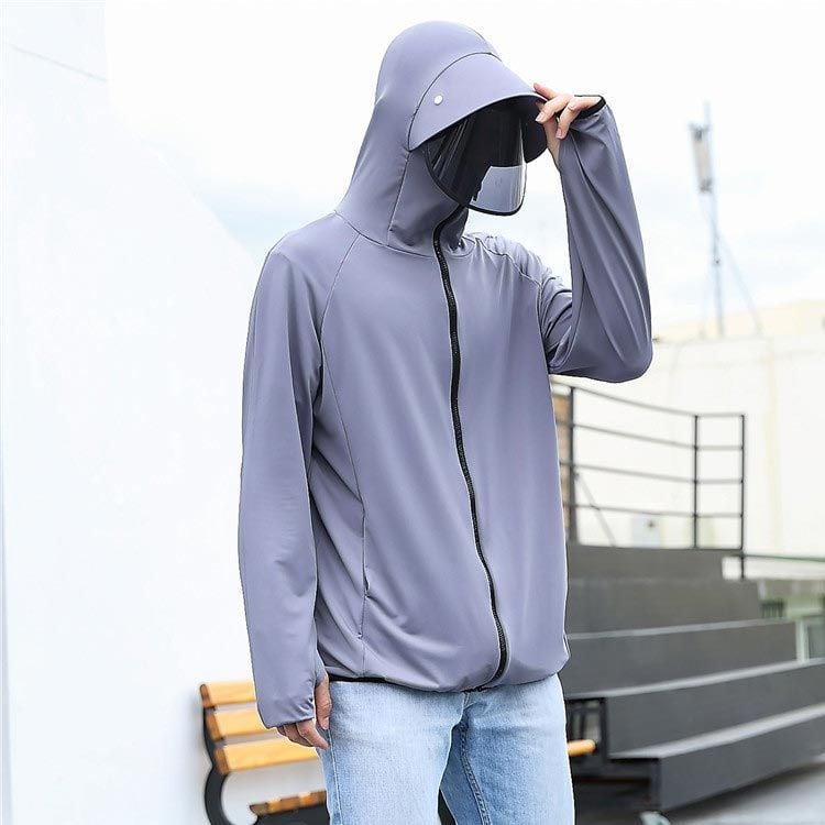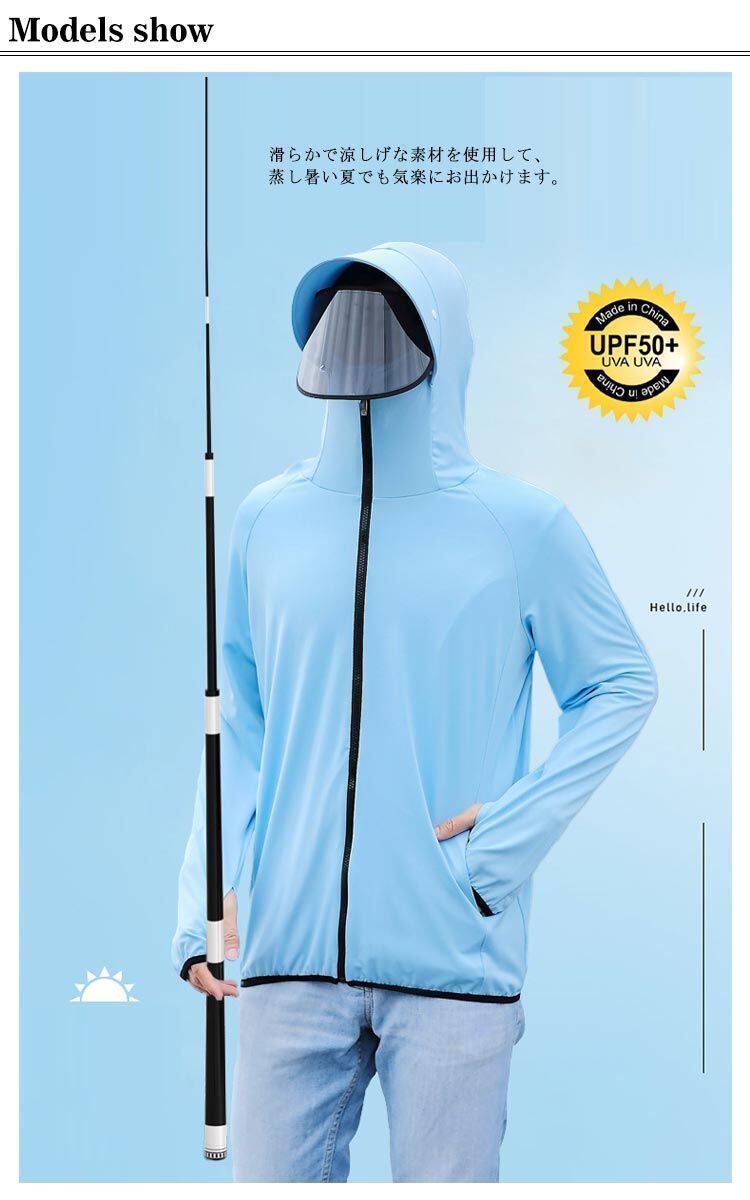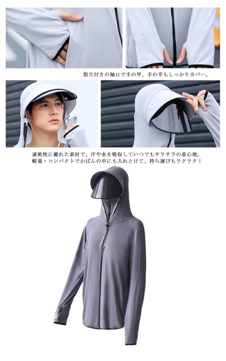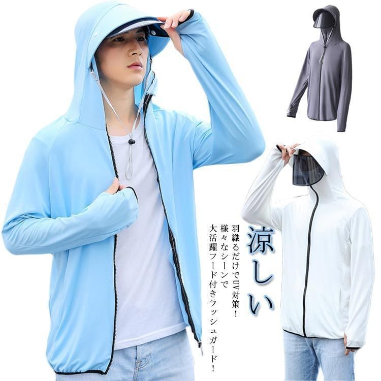 新品 ラッシュガード メンズ パーカー 長袖 水着 UVカット アイスシルク ラッシュパーカー 指穴付き サンバイザー 接触冷感 アウター 夏物 フード付き 大きいサイズ 日焼け対策 紫外線対策 kkkdeg