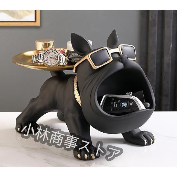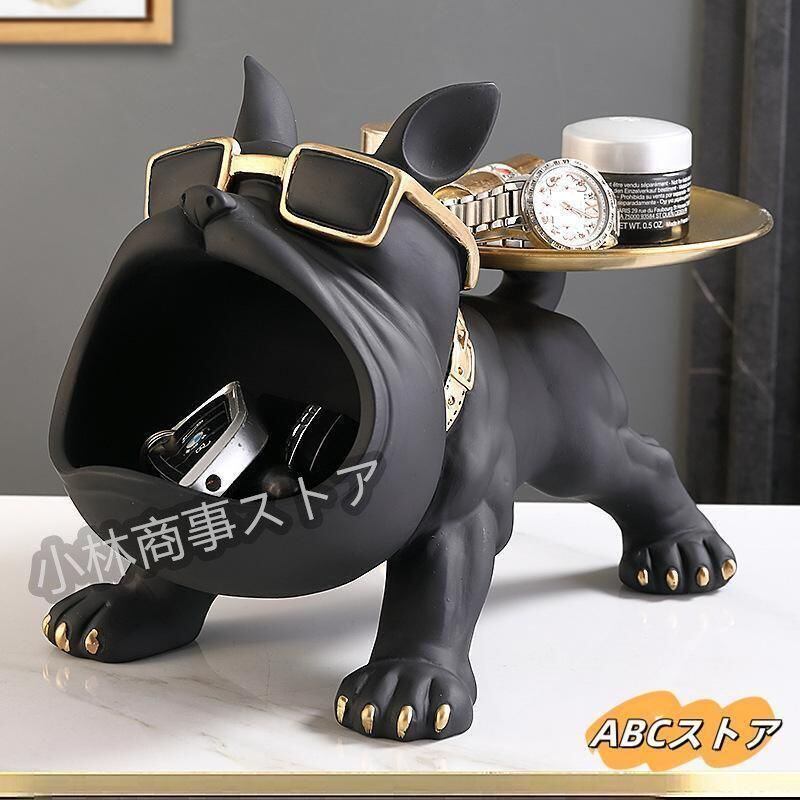 新品 置物 犬の像の装飾トレイ フレンチブルドック ダブルトレイ キー収納トレイ犬 卓上 鍵置き 眼鏡 リモコン 化粧品 小物収納 インテリア 雑貨 kkkymd