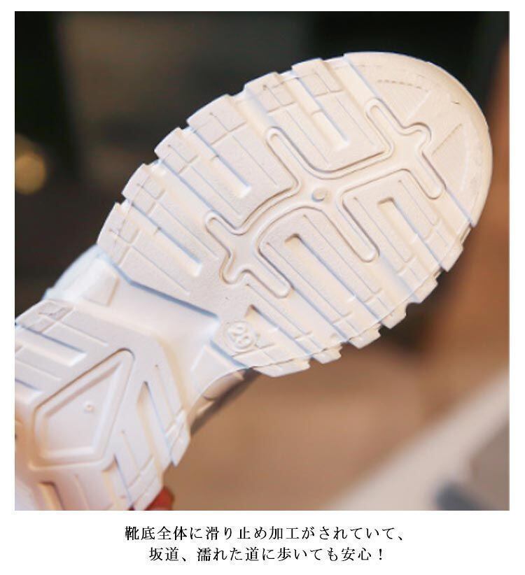 靴底全体に滑り止め加工がされていて、坂道、濡れた道に歩いても安心!