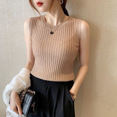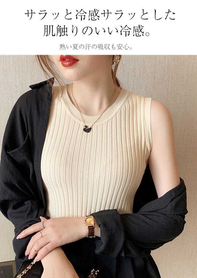 フィットしたスリムに着られるのでガウチョパンツやワイドパンツなどボリュームのあるボトムスとも好相性で使えるタンクトップ(タンク)。
