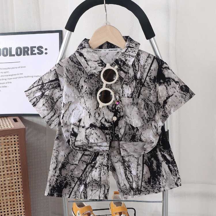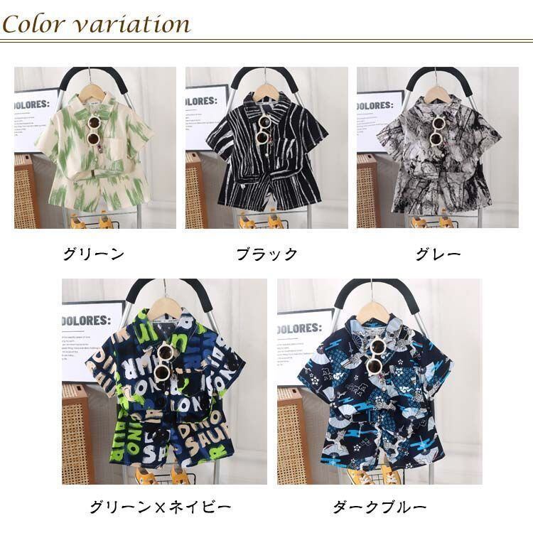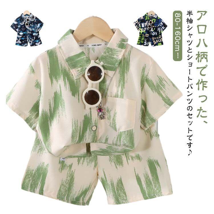 新品 キッズ アロハシャツ セットアップ 半袖シャツ ハーフパンツ 上下セット ショートパンツ 2点セット 総柄 子供服 子ども 男の子 女の子 ジュニア ベビー服 春夏 リゾート 海 ビーチ 旅 kkkxdl
