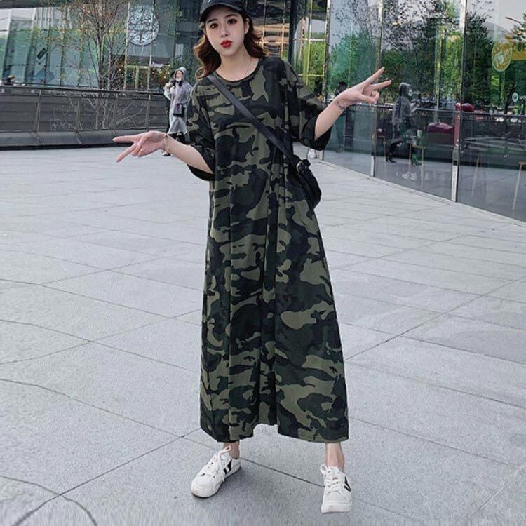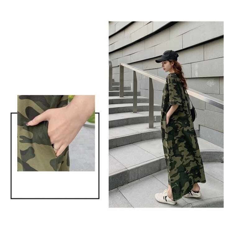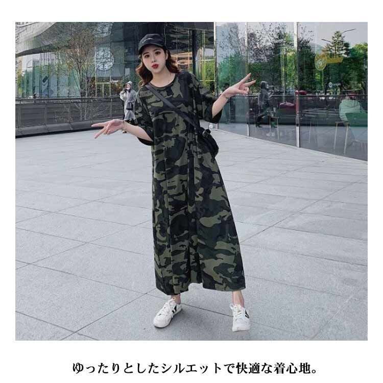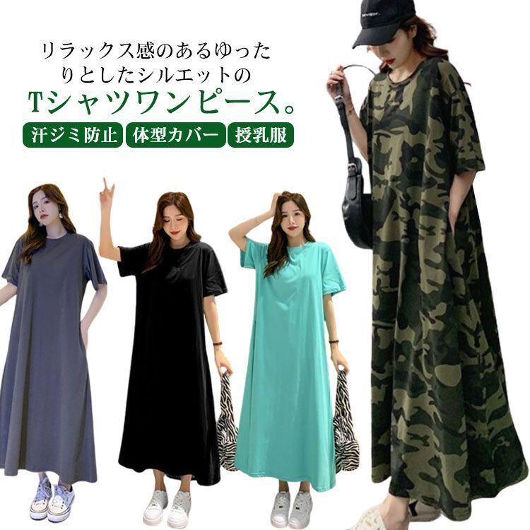 新品 ワンピース Tシャツ レディース 迷彩 半袖 オーバーサイズ ロング丈tシャツ ロンT ワンピ クルーネック 汗ジミ防止 UVカット 体型カバー マキシ丈ワンピース ロング丈 マタニティ 授乳服 トッ kkkynt