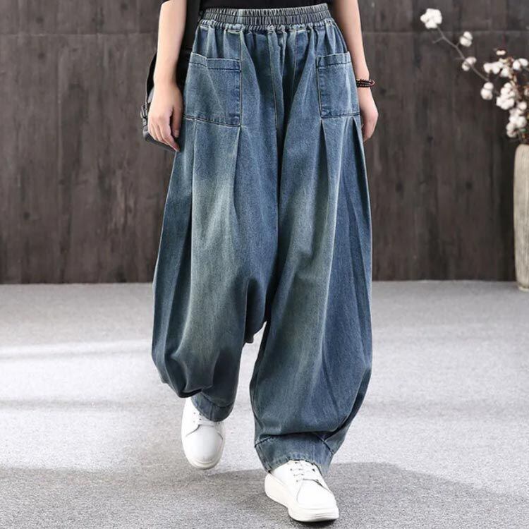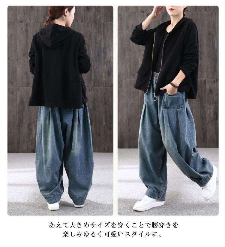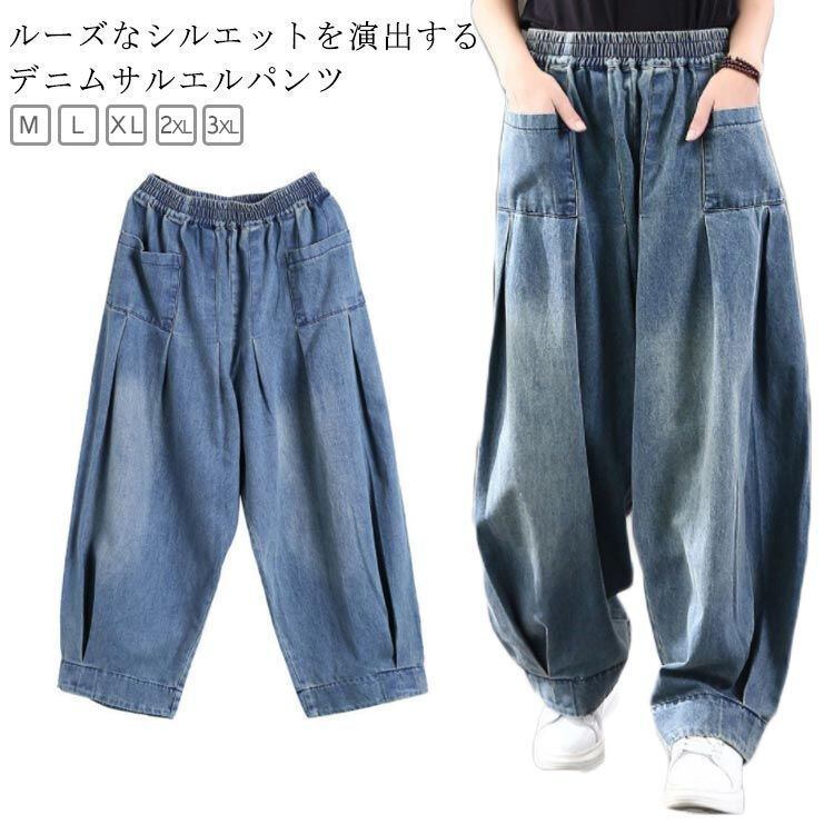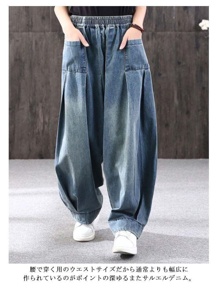 新品 デニム サルエルパンツ ブルー タイ 着?せ ウエストゴム アラジンパンツ レディース サルエル デニムパンツ 体型カバー パンツ 春服 ストレスフリー ワイドパンツ パンツ レディース 春秋 ダンス kkkopa