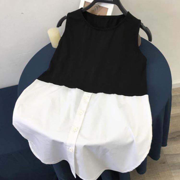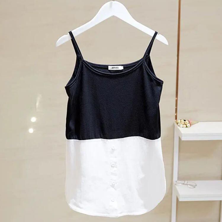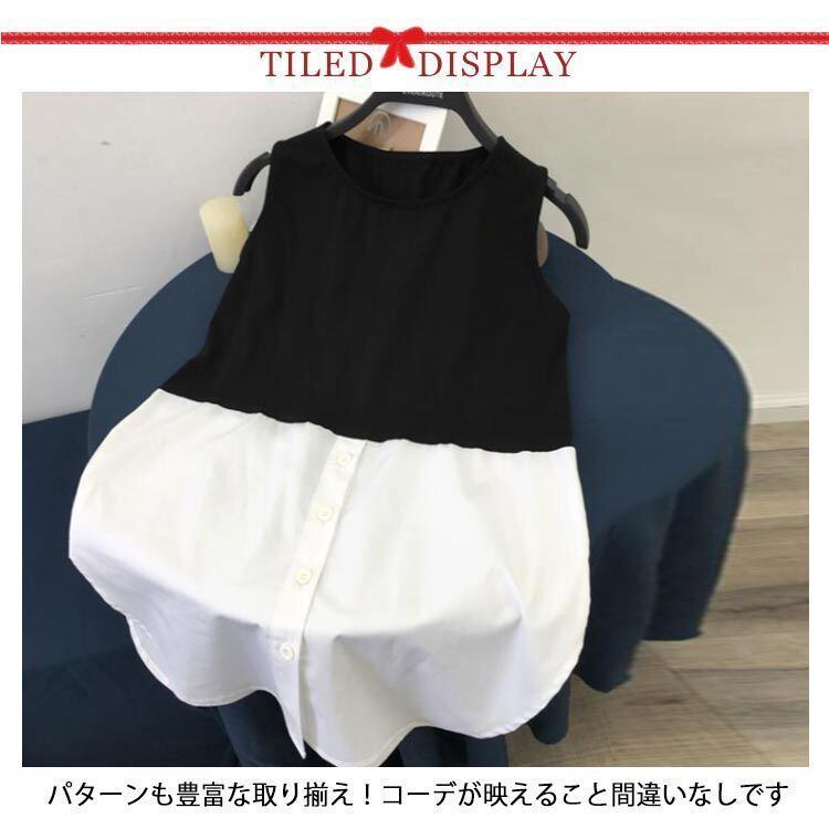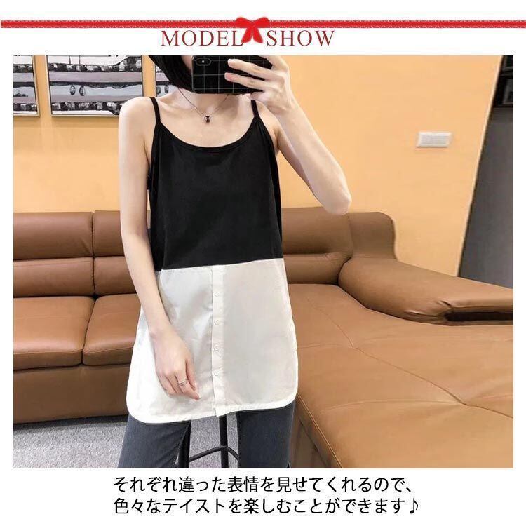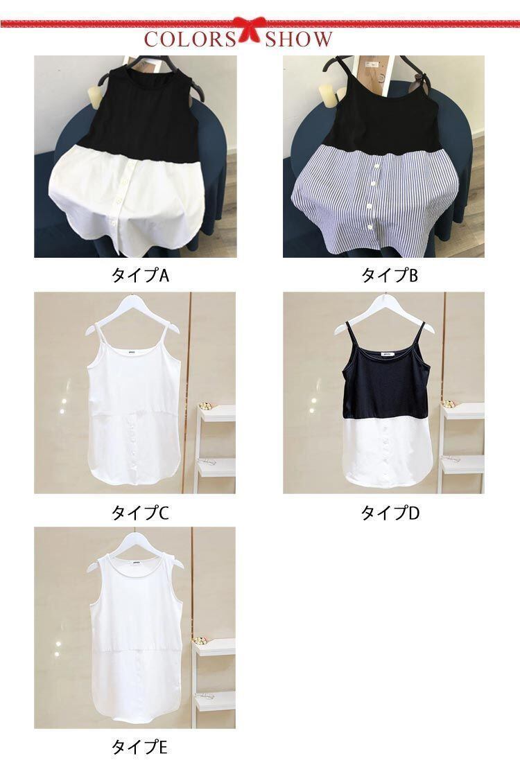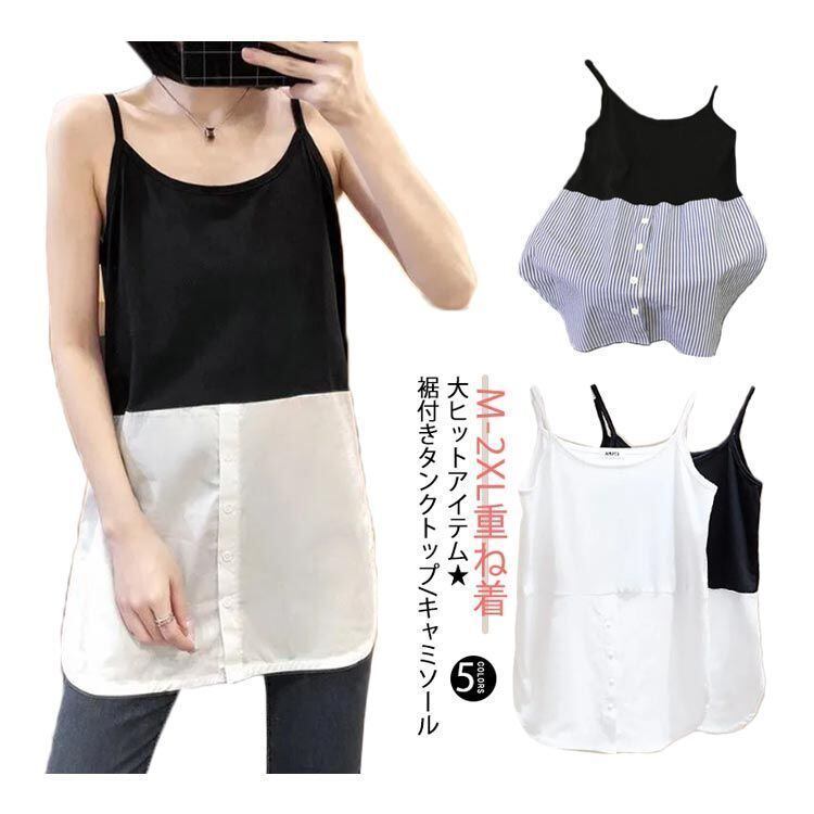 新品 レイヤード キャミソール ロング タンクトップ ノースリーブ タンク レディース つけ裾 春 夏 ストライプ 重ね着 シャツ ラウンドヘム インナー トップス シフォン シャツ 母の日 付け裾 お尻が kkkfmg