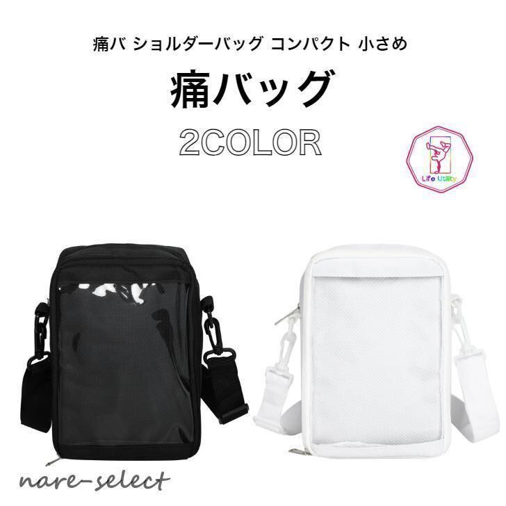 新品 痛バッグ 小さめ ミニ ショルダー 痛バ ショルダーバッグ スリム バック シンプル 黒 白 缶バッジ キーホルダー 透明 おしゃれ かわいい 人気 推し活 プレゼント kkkhgr