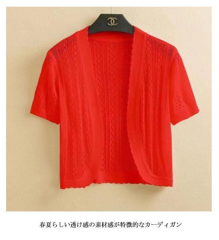 新品 カーディガン レディース 薄手 夏用 夏 冷房対策 ボレロ 半袖 ニットトップス サマーニッ ト 透かし編み ショート丈 羽織 冷房対 kkkkdz