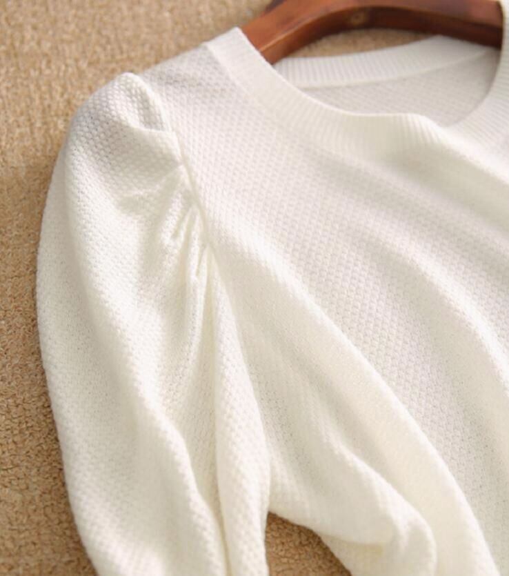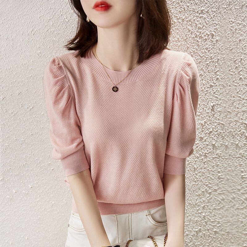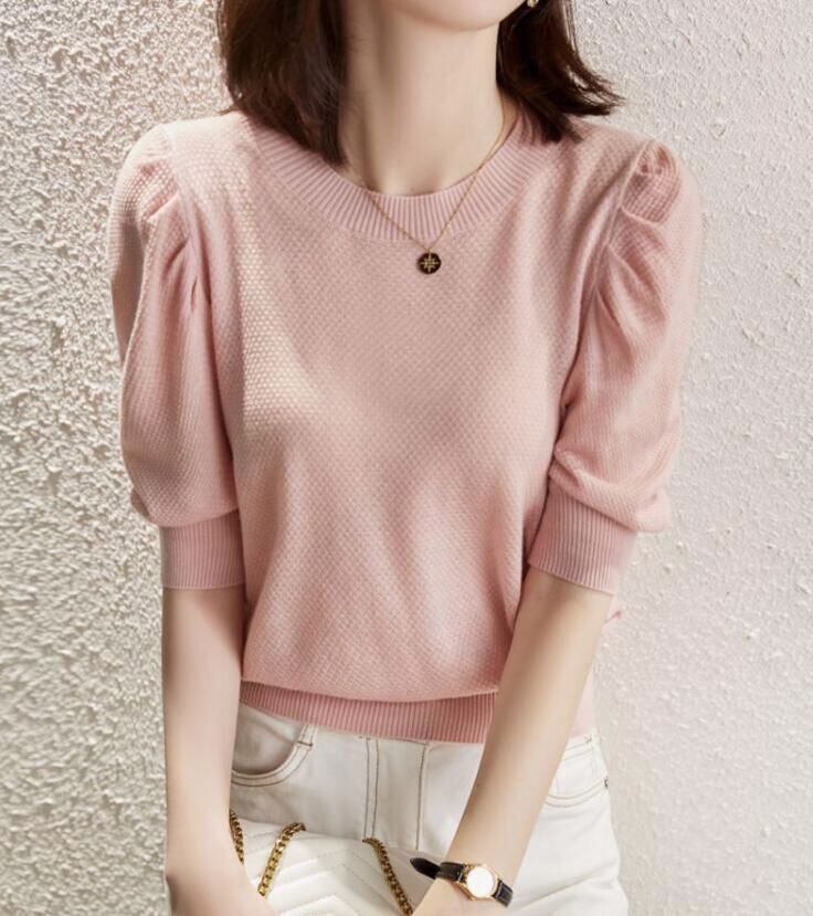 新品 ニットTシャツ パフスリーブ レディース 半袖 Uネック シンプル ニット トップス カットソー サマーニット キレイめ 大人 カジュアル 半袖 レディース きれいめ オフィス カジュアル 20代 30代 kkkodc