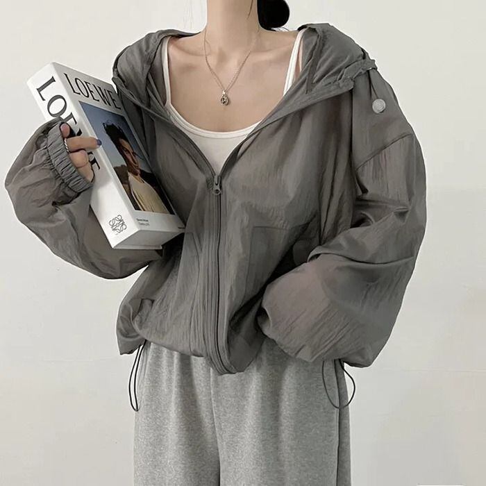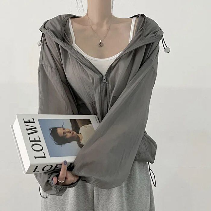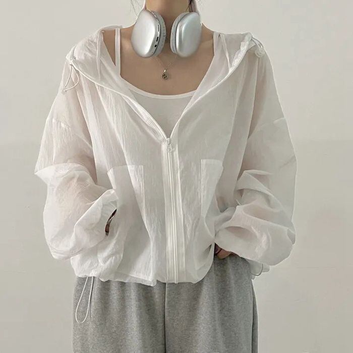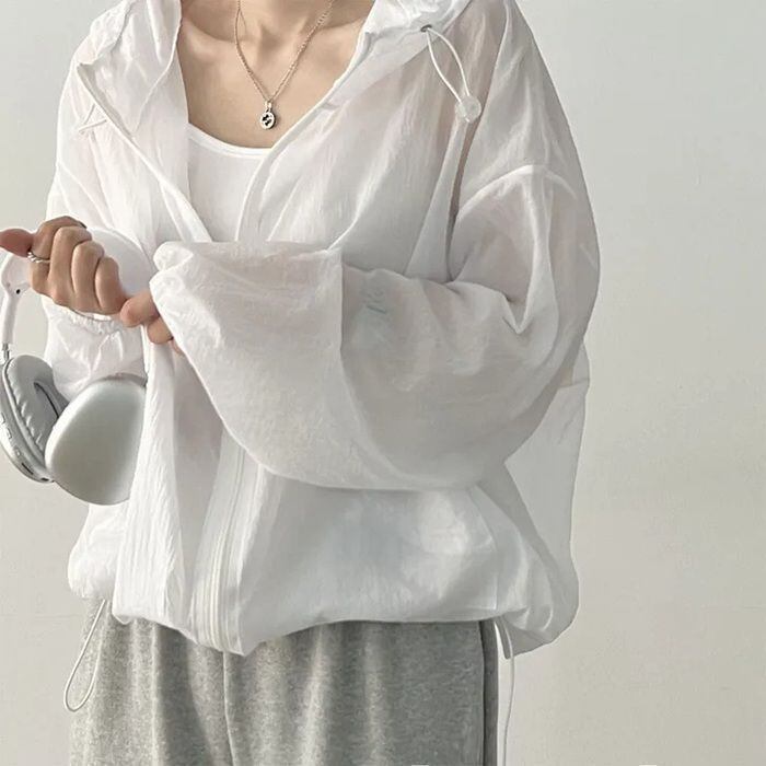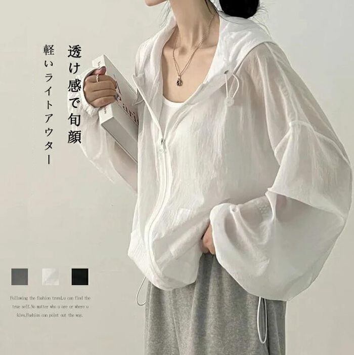 新品 シアー パーカー 夏 レディース ブルゾン 薄手 透け感 ゆったり シアーブルゾン ライトアウター バルーンスリーブ シアーパーカー kkkere