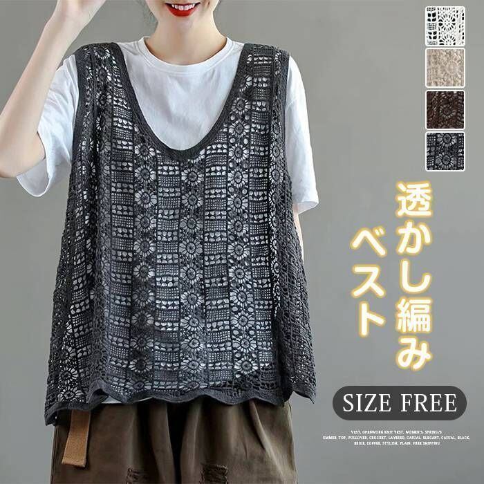 新品 ベスト 透かし編み ニットベスト レディース 春夏 トップス 無地 重ね着 プルオーバー かぎ編み クロシェ編み レイヤード カジュアル きれいめ カジュアル おしゃれ kkkqac