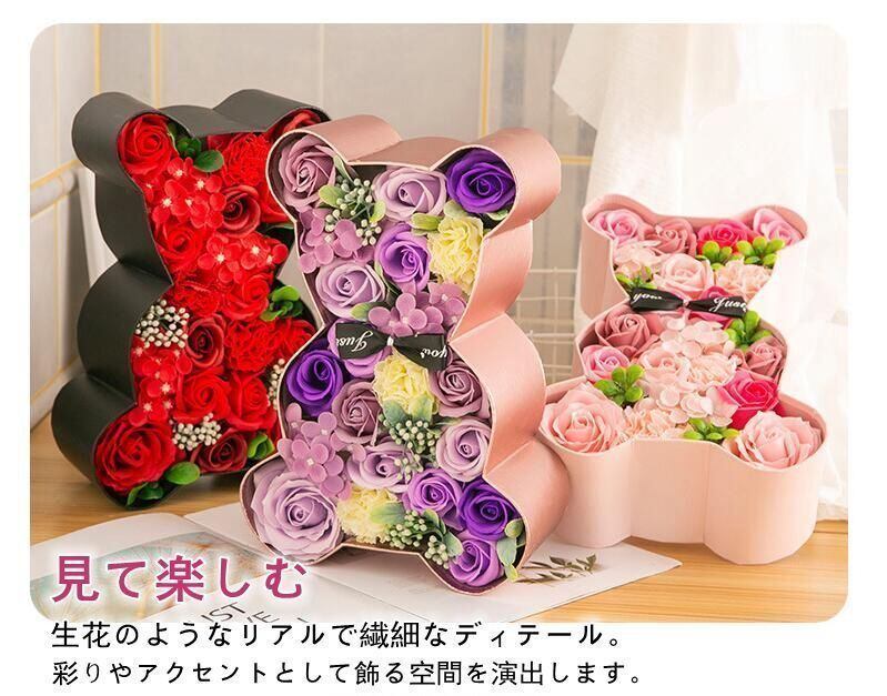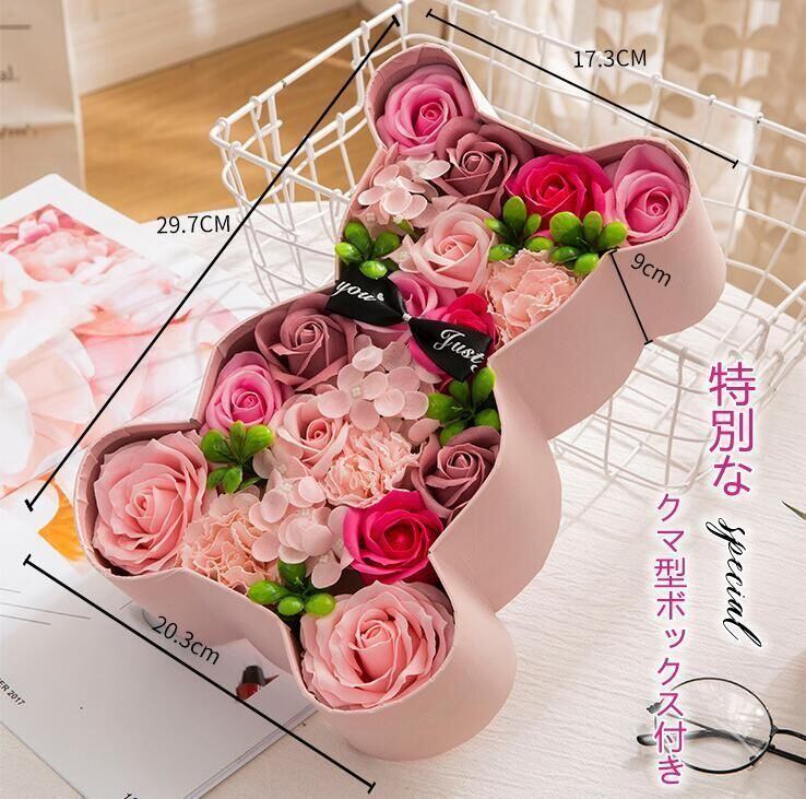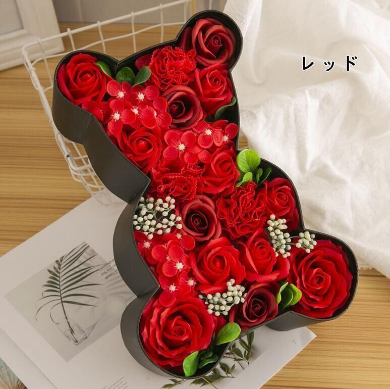 新品 ソープフラワー ホワイトデー お返し 造花 ボックスフラワー クマ型 プレゼント ギフト 石鹸花 ボックス 母の日 結婚祝い バレンタイン アレンジメント お祝い お誕生日 ケース kkkyzm