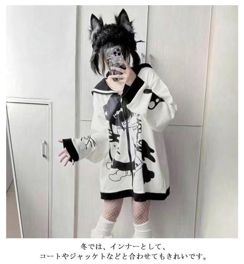 新品 地雷系 ジップアップ パーカー レディース セーラー襟 トップス サブカル系 病みかわいい 長袖 トレーナー スウェット ジャケット 原宿系 渋谷系 ストリート系 ギャル服 コート アウター おしゃれ ゆったり 春 秋 学生 kkkwud