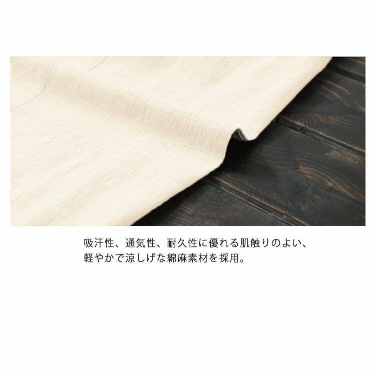 吸汗性、通気性、耐久性に優れる肌触りのよい、軽やかで涼しげな綿麻素材を採用。