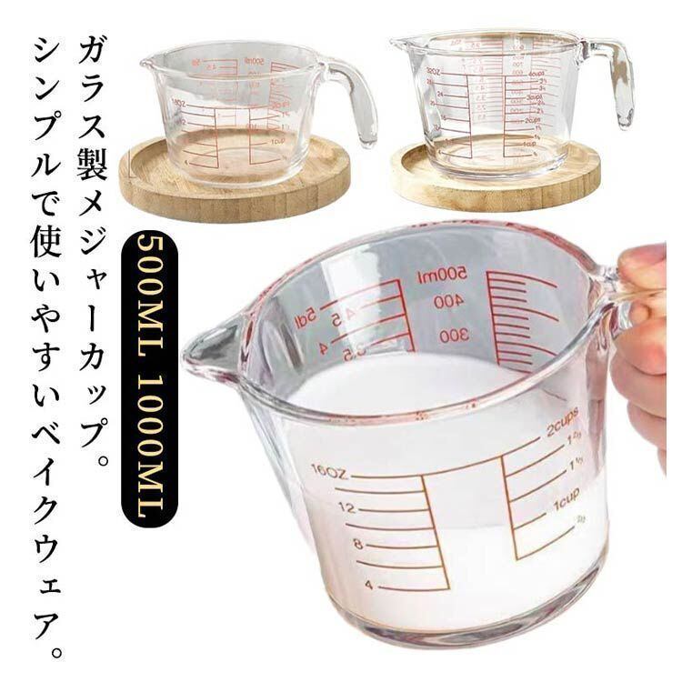 新品 目盛付き 耐熱ガラス 計量 調理 500ml/1000ml ガラスメジャーカップ 食洗器対応 カップ 計量カップ 取っ手付き 大容量 耐熱 メジャーカップ 電子レンジOK クリア 料理 製菓 調理器具 kkkvxh