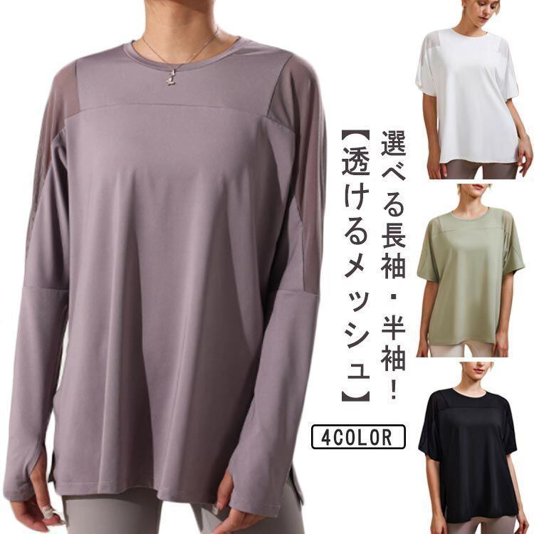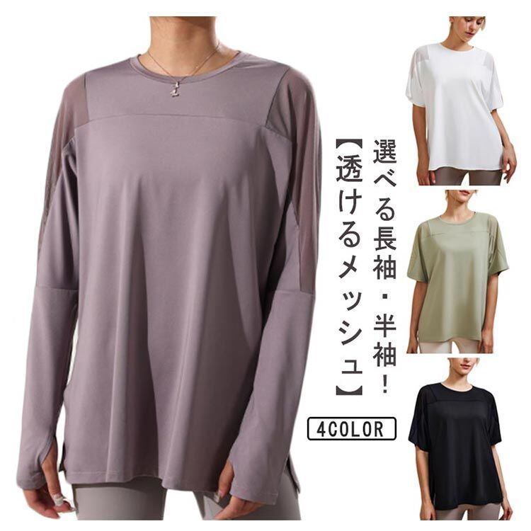 新品 ヨガウェア トップス 長袖 半袖 ヨガtシャツ レディース ホットヨガウェア ヨガトップス 吸汗 速乾 袖メッシュ 薄手 ロング丈 おしゃれ 体型カバー ゆったり ストレッチ スポーツウェア ジムウ kkklsc