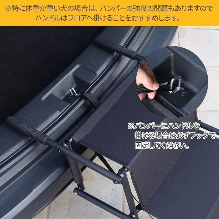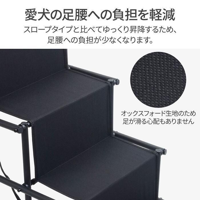 \u003c!-- description --\u003e簡単設置!折りたたみペットステップ\u003cbr\u003e\u003cbr\u003e愛犬の足腰への負担を軽減\u003cbr\u003eスロープタイプと比べてゆっくり昇降するため、足腰への負担が少なくなります。\u003cbr\u003eオックスフォード生地のため足が滑る心配もありません。\u003cbr\u003e\u003cbr\u003e持ち運び&収納ラクラク\u003cbr\u003e丈夫で軽い鋼製。\u003cbr\u003eコンパクトに収納でき、車のトランクにもすっきりと収まります。\u003cbr\u003e\u003cbr\u003e本体を広げ、車後部にフックを掛けたら設置完了!\u003cbr\u003e\u003cbr\u003e〔商品詳細〕\u003cbr\u003e商品サイズ:\u003cbr\u003e展開時/約高さ76×幅47×奥行101cm\u003cbr\u003e折りたたみ時/約幅47×奥行40×厚み12cm\u003cbr\u003eハンドル部分:約19cm\u003cbr\u003eフックの長さ:約40cm\u003cbr\u003e重量:約3.1kg\u003cbr\u003e耐荷重:80kg\u003cbr\u003e素材:鋼、オックスフォード布、ラバー\u003cbr\u003e\u003cbr\u003e車載 昇降 ペット用ステップ ペット用階段 ドッグステップ 段差解消 傾斜 軽量 お年寄り バリアフリー ステップコーナー 滑り台 コンパクト トランク 持ち運び 移動 おりたたみ 折畳み 折り畳み 車載 収納 老犬 愛犬 高齢犬 小型犬 中型犬 大型犬 昇り降り 大型犬用 凸凹 屋外 室内 アウトドア キャンプ ドッグラン ウッドデッキ 病院 ベッド 段差 散歩 ワンちゃん いぬ イヌ ドック 庭 玄関 おすすめ 激安 安い 売れ筋 便利 ペット用品 犬用 ペット用スロープ 踏み台 ステップ\u003c!-- /description --\u003e\u003cbr\u003e\u003cbr\u003e\u003ctable cellpadding="0" border="0" \u003e \u003ctr\u003e \u003ctd\u003e \u003cimg src="https://shopping.c.yimg.jp/lib/attention8-25/necchuushou.jpg" /\u003e \u003c/td\u003e \u003c/tr\u003e\u003c/table\u003e\u003cbr\u003e\u003ctable cellpadding="0" border="0" \u003e \u003ctr\u003e \u003ctd width="50%" valign="top" align="center"\u003e \u003cimg src="https://shopping.c.yimg.jp/lib/attention8-25/20250501.jpg" /\u003e \u003c/td\u003e \u003ctd\u003e\u003cimg src="https://shopping.geocities.jp/discount-spirits2/img/spacer.gif" /\u003e\u003c/td\u003e \u003ctd width="50%" valign="top" align="center"\u003e \u003cimg src="https://shopping.c.yimg.jp/lib/attention8-25/recommend_250501.jpg" /\u003e \u003c/td\u003e \u003c/tr\u003e\u003c/table\u003e\u003cstrong\u003e簡単設置!折りたたみペットステップ\u003cbr\u003e\u003c/strong\u003e\u003cbr\u003eペットステップを使えば、\u003cbr\u003e愛犬を車から安全に乗り降りさせることができます。\u003cbr\u003e\u003cbr\u003e\u003cstrong\u003e・愛犬の足腰への負担を軽減\u003cbr\u003e\u003c/strong\u003eスロープタイプと比べてゆっくり昇降するため、\u003cbr\u003e足腰への負担が少なくなります。\u003cbr\u003eオックスフォード生地のため足が滑る心配もありません。\u003cbr\u003e\u003cbr\u003e\u003cstrong\u003e・持ち運び&収納ラクラク\u003cbr\u003e\u003c/strong\u003e丈夫で軽い鋼製。\u003cbr\u003eコンパクトに収納でき、\u003cbr\u003e車のトランクにもすっきりと収まります。\u003cbr\u003e\u003cbr\u003e\u003cstrong\u003e・広げて掛けるだけの簡単設置\u003cbr\u003e\u003c/strong\u003e本体を広げ、車後部にフックを掛けたら設置完了!\u003cbr\u003eハンドル部分にはラバー素材が使われているため、\u003cbr\u003e滑りにくくなっており安心です。\u003cbr\u003e\u003cbr\u003e\u003cstrong\u003e〔商品詳細〕\u003cbr\u003e\u003c/strong\u003e商品サイズ:\u003cbr\u003e展開時/(約)高さ76×幅47×奥行101(cm)\u003cbr\u003e折りたたみ時/(約)幅47×奥行40×厚み12(cm)\u003cbr\u003eハンドル部分:(約)19cm\u003cbr\u003eフックの長さ:(約)40cm\u003cbr\u003e重量:(約)3.1kg\u003cbr\u003e耐荷重:80kg\u003cbr\u003e素材:鋼、オックスフォード布、ラバー\u003cbr\u003e\u003cbr\u003e※特に体重の重い犬の場合は、バンパーの強度の問題もありますので\u003cbr\u003e ハンドルはフロアへ掛けることをおすすめします。\u003cbr\u003e※バンパーにハンドルを掛ける場合は必ずフックで固定してください。\u003cbr\u003e\u003cbr\u003e