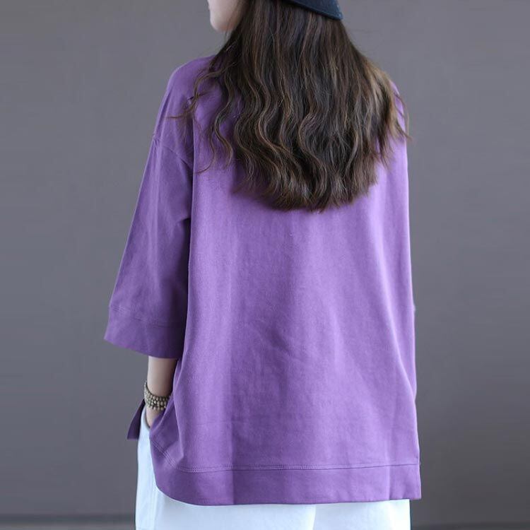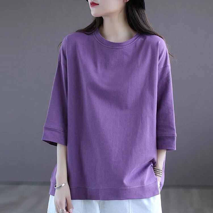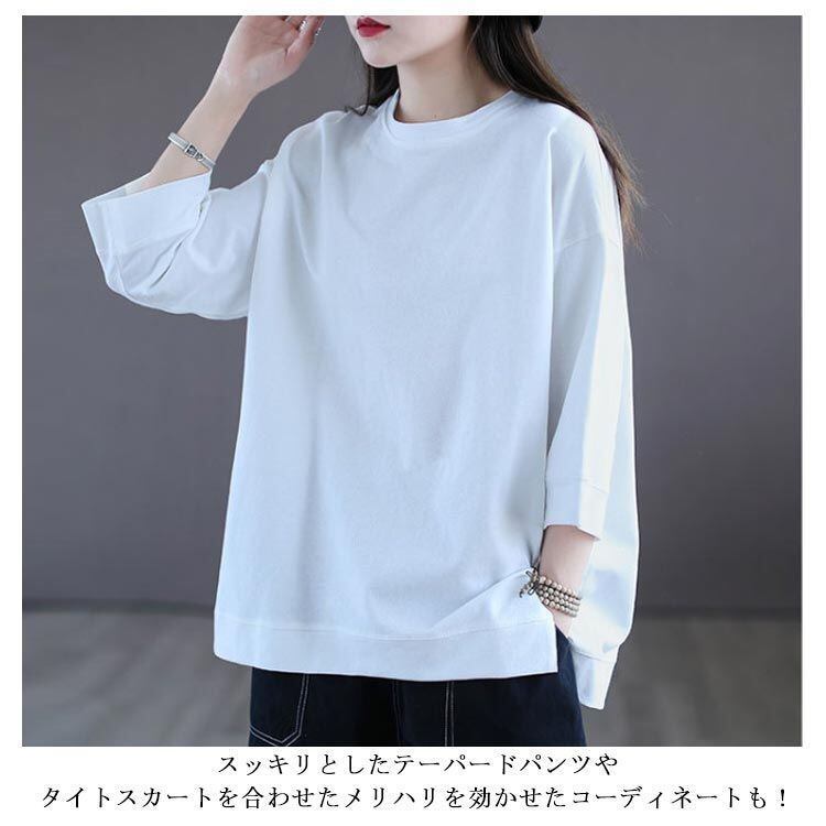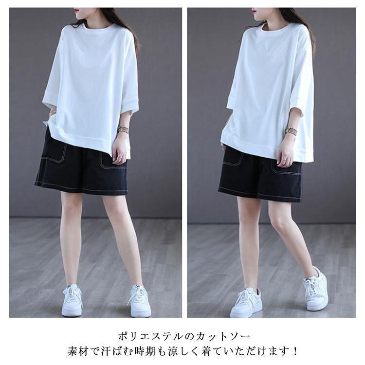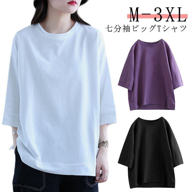 新品 七分袖 Tシャツ レディース 7分袖 トップス 7分袖tシャツ チュニック 体型カバー 無地 クルーネック スリット カットソー プルオーバー ビッグTシャツ カジュアル 夏 ナチュラル カジュアル kkkpvk
