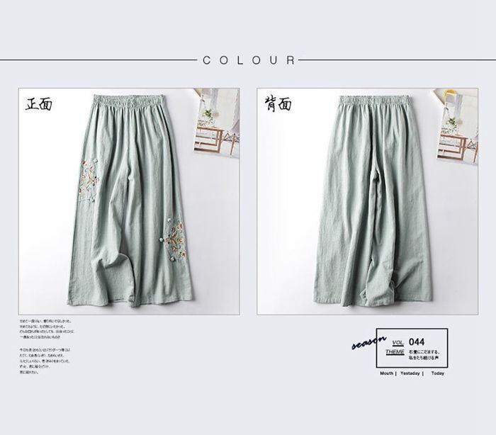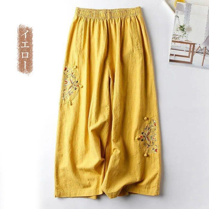 新品 ワイドパンツ 刺繍入り 綿麻風 レディース ゆったり ガウチョパンツ 女性 麻風 コットンリネン ワイド 涼しい パンツ 刺繍 無地 kkknnk