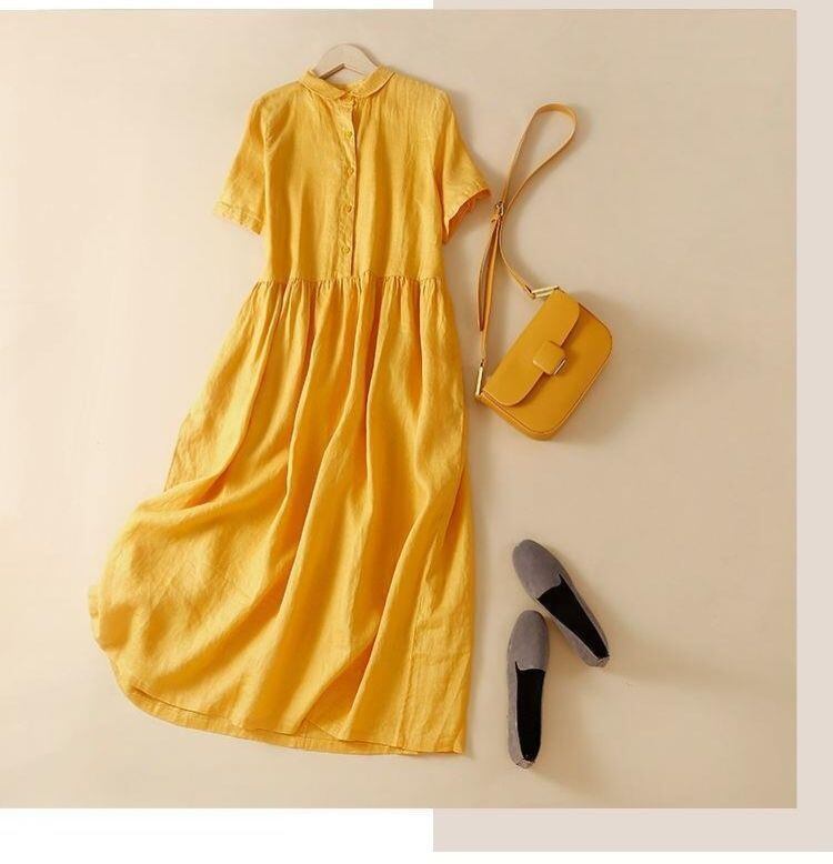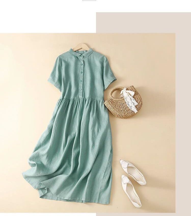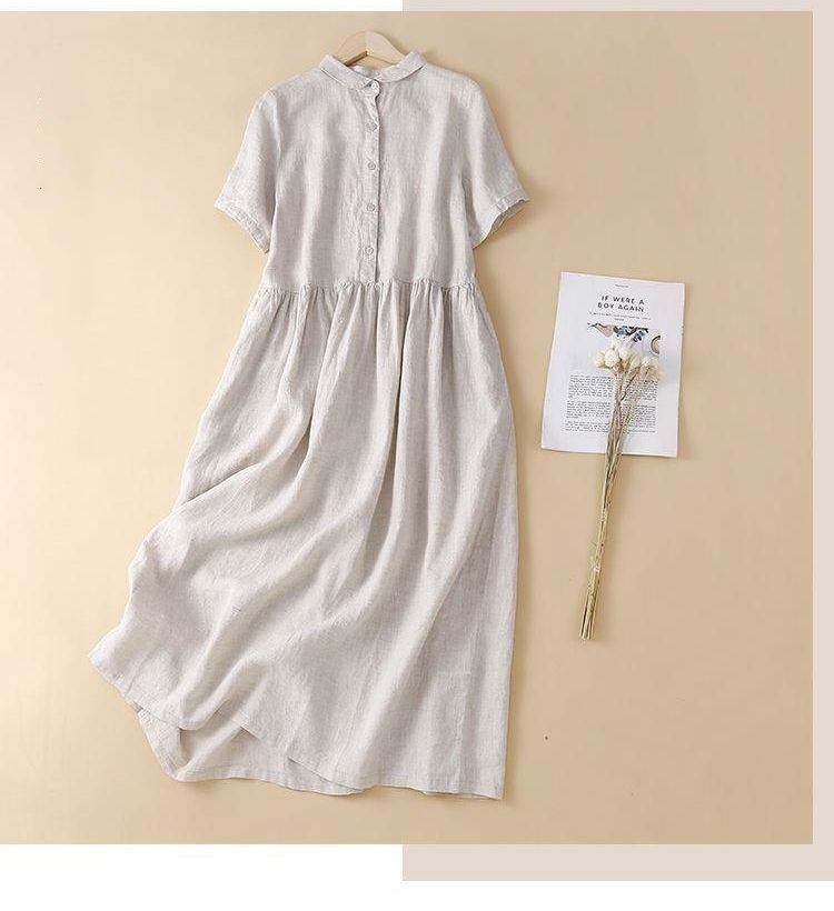 新品 ワンピース レディース 半袖 夏 40代 30代 50代 綿麻 シャツワンピース コーデ 白 洋服 ロング リネン kkkiym