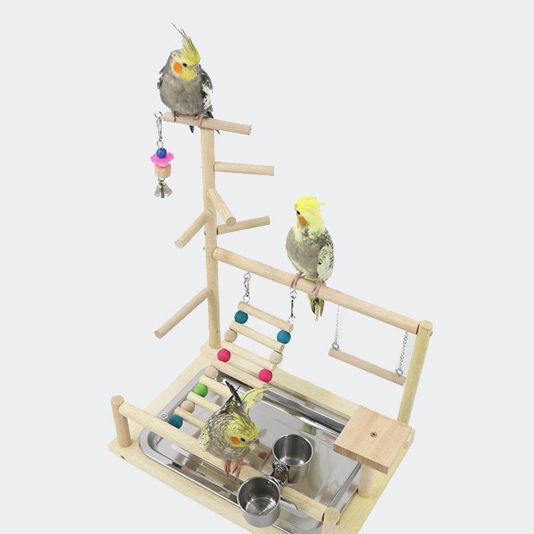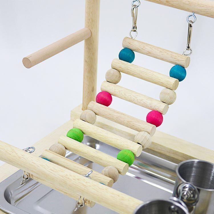新品 インコ 遊び場 鳥用 アスレチック 2層 バードトイ 鳥のおもちゃ 木製 はしご 止まり木 スタンド エサ入れ 水入れ 食器 水器 鳥の巣 カゴ 遊園地 オウム ブランコ ラダー ベル 鳥の遊び場 ス kkkslt