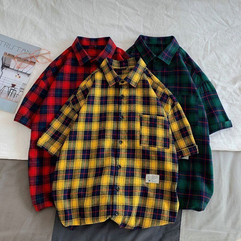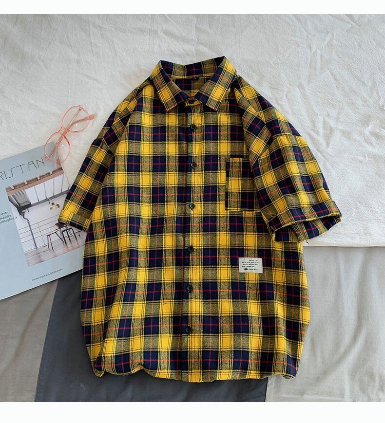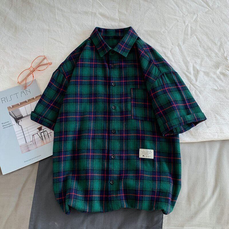 新品 チェックシャツ トップス メンズ 半袖シャツ 開襟シャツ メンズシャツ 通学 カジュアルシャツ 夏 オシャレ カジュアル kkkeix
