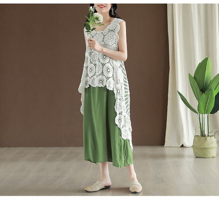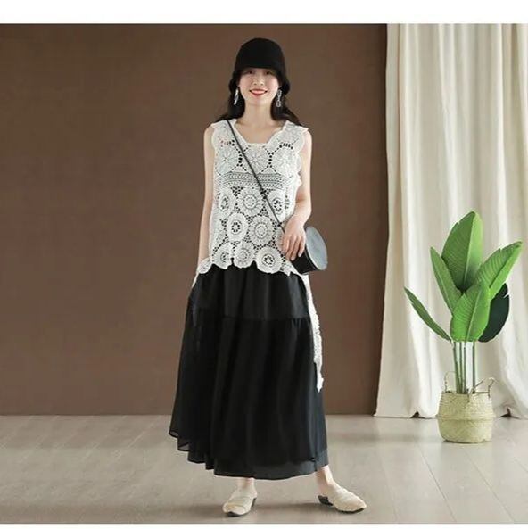 新品 レース ベスト ノースリーブ 花柄 刺繍 後ろ長め 重ね着 不規則 ニット ジレ トップス 羽織り ロングベスト 総柄 透かし編み 個性的 タンクトップ レディース ゆったり コーデ 着痩せ 海 カーディガン 前後違い 春夏 秋 お呼ばれ kkktcq