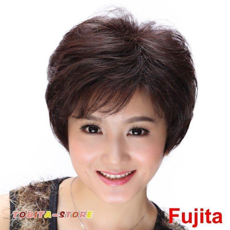 新品 女性用かつら フルウィッグ ショート 人毛 中高年 母のウィッグ ショート 通気性抜群 かつら ふんわり kkkipy