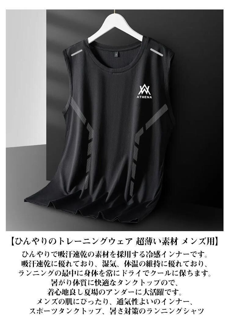 【ひんやりのトレーニングウェア 超薄い素材 メンズ用】ひんやりで吸汗速乾の素材を採用する冷感インナーです。吸汗速乾に優れており、湿気、体温の維持に優れており、ランニングの最中に身体を常にドライでクールに保ちます。暑がり体質に快適なタンクトップので、着心地良し夏場のアンダーに大活躍です。メンズの肌にぴったり、通気性よいのインナー、スポーツタンクトップ、暑さ対策のランニングシャツ