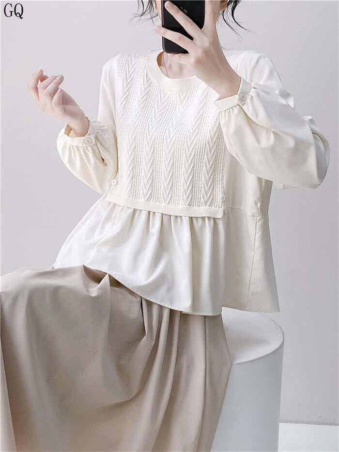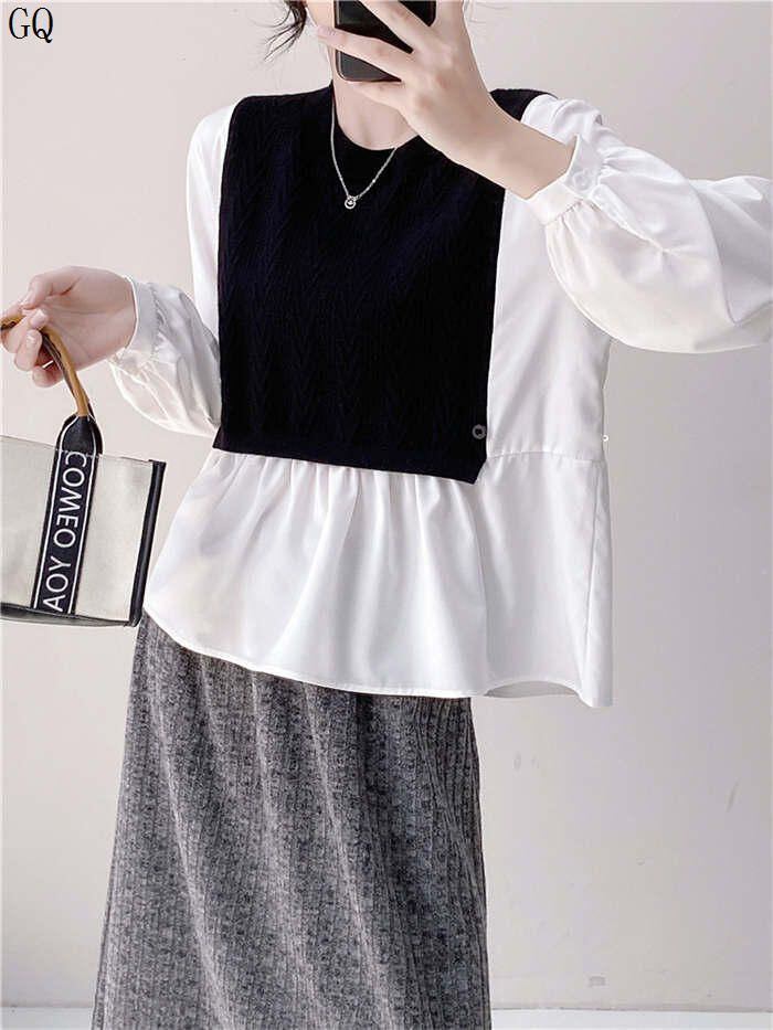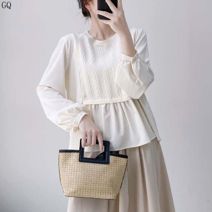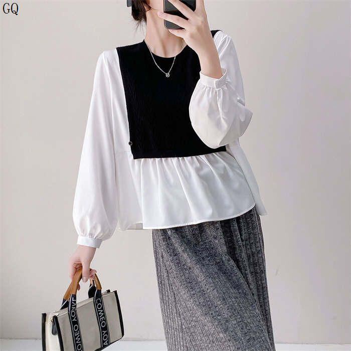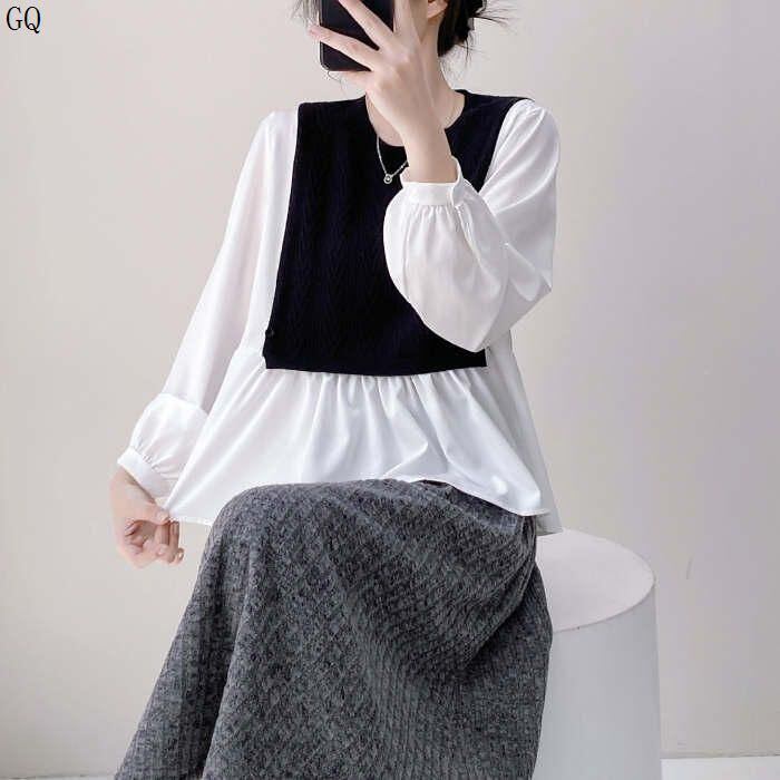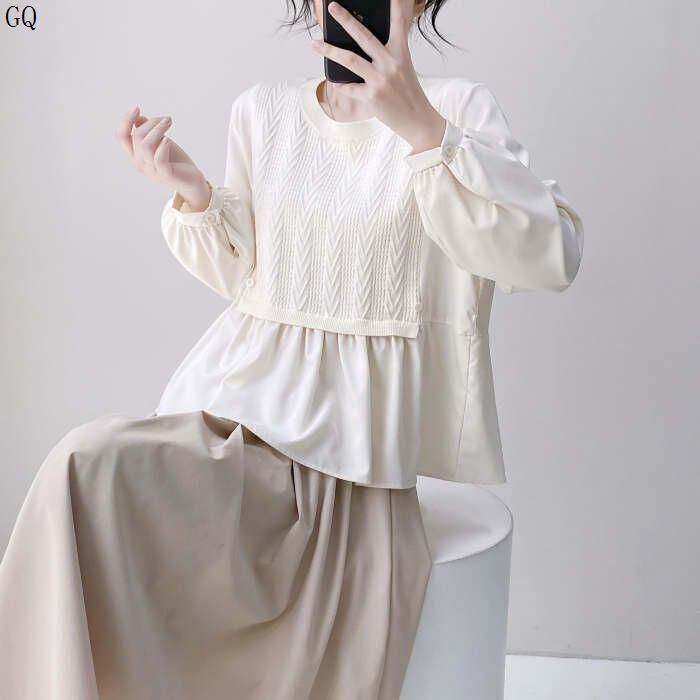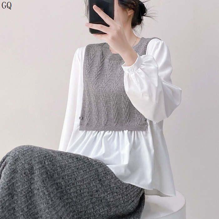 新品 シャツ ブラウス 長袖 レディース 切り替え 春 夏 秋 きれいめ トップス 体型カバー ゆったり プルオーバー ドッキング レイヤード 重ね着 切替ブラウ 異素材 ク kkknpp