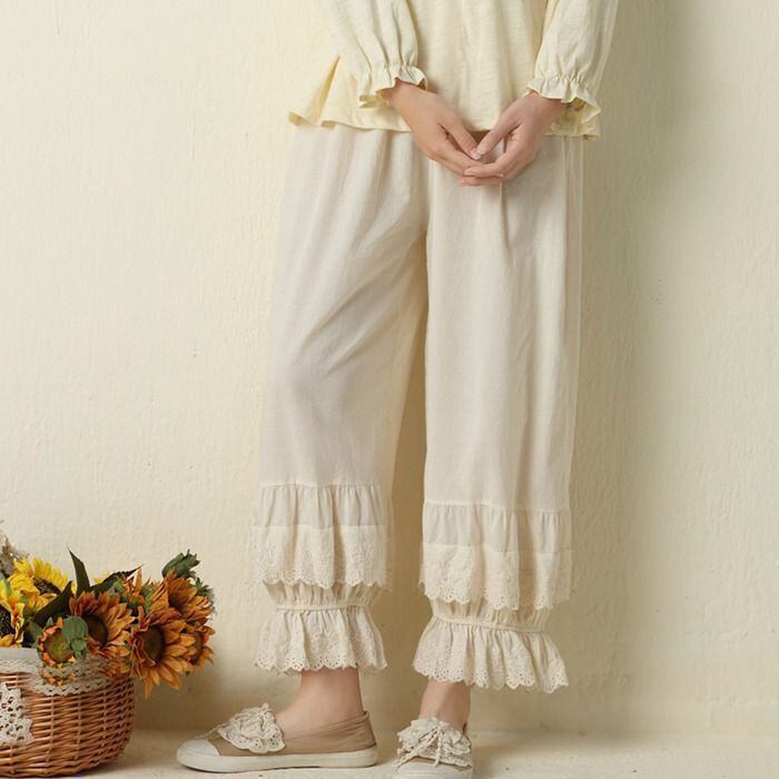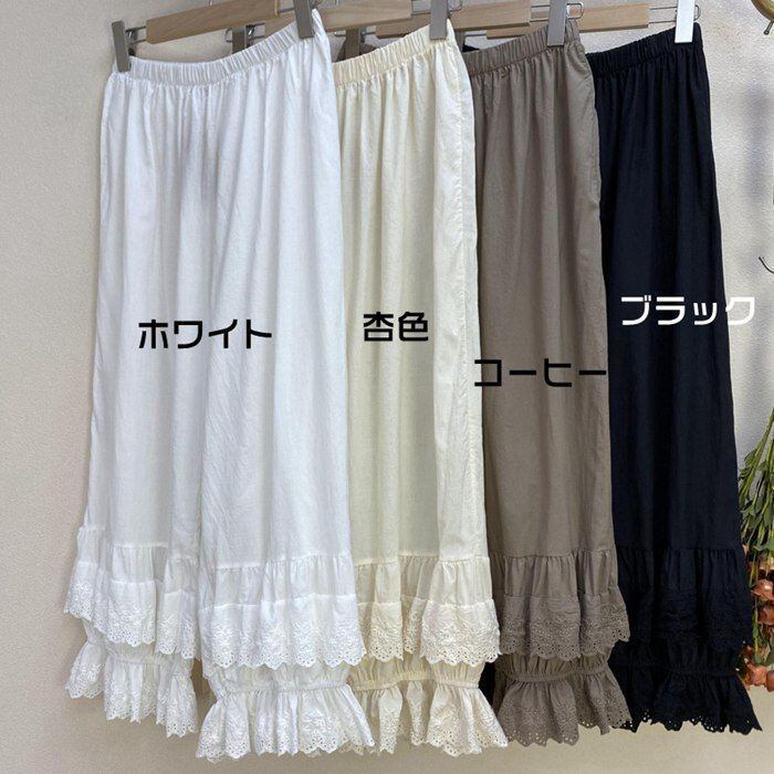 ペチパンツ レース 刺繍 ロング パンツ インナー 透け 防止 レディース ナチュラル 裾ゴム ゆったり 大きめ 楽 涼しい 春 夏 秋 かわいい おしゃれ 大人可愛い シンプル カジュアル 重ね着 ペチコート 30代 40代 50代weiqi02