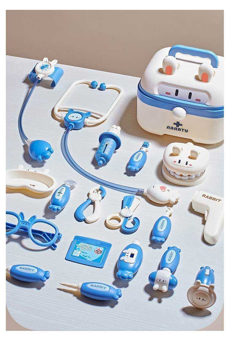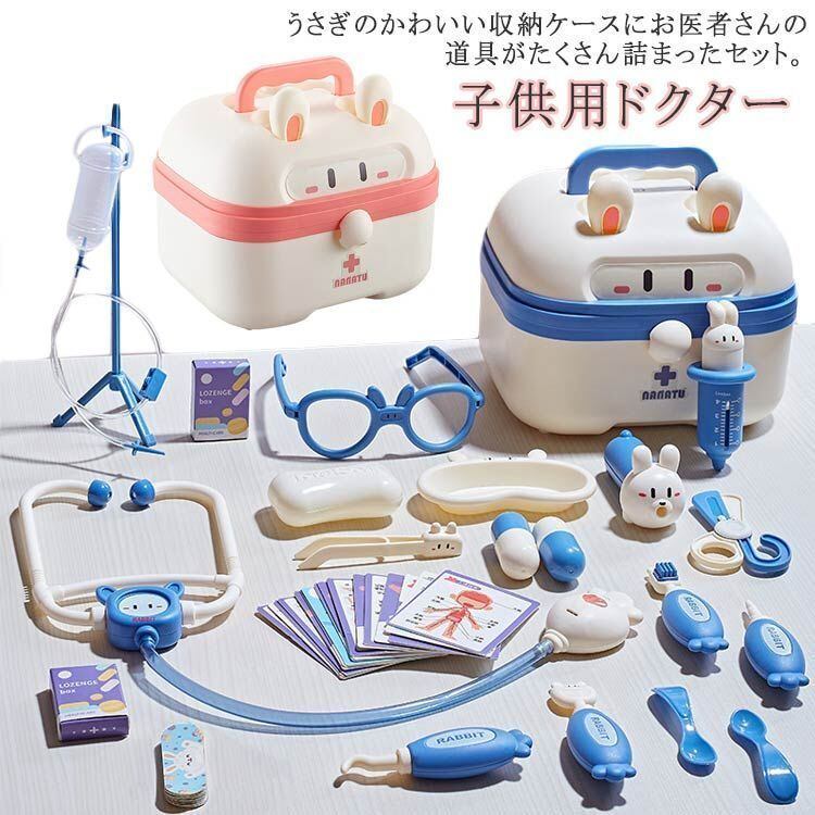 うさぎのかわいい収納ケースにお医者さんの道具がたくさん詰まったセット。