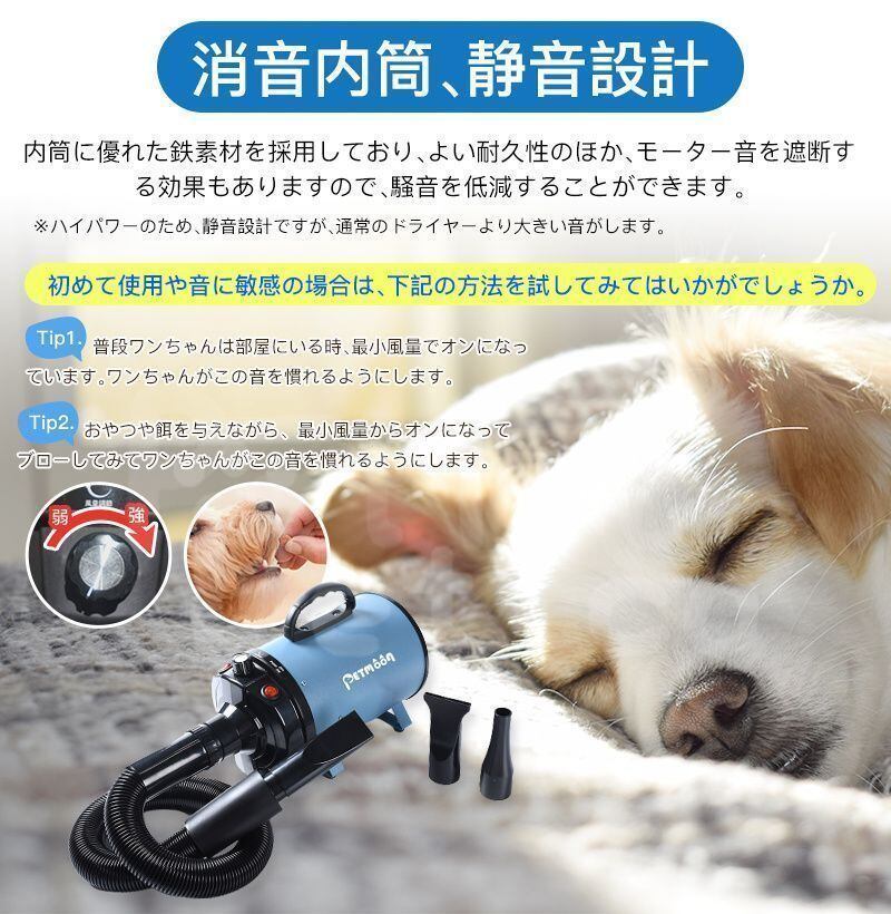 新品 Petmoon ペットドライヤー 1年保証!業務用 犬 ペットヘアードライヤー ペット用ドライヤー 3つノズル付き 強いブロー力 急速乾燥 騒音低減 犬用 置き型 梅雨対策 静音 風速や温度調整可能 kkkfsy