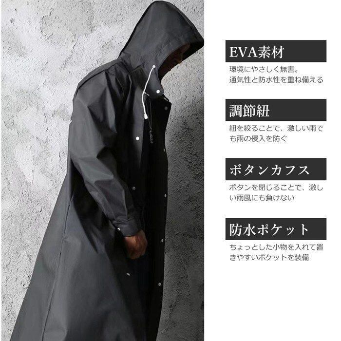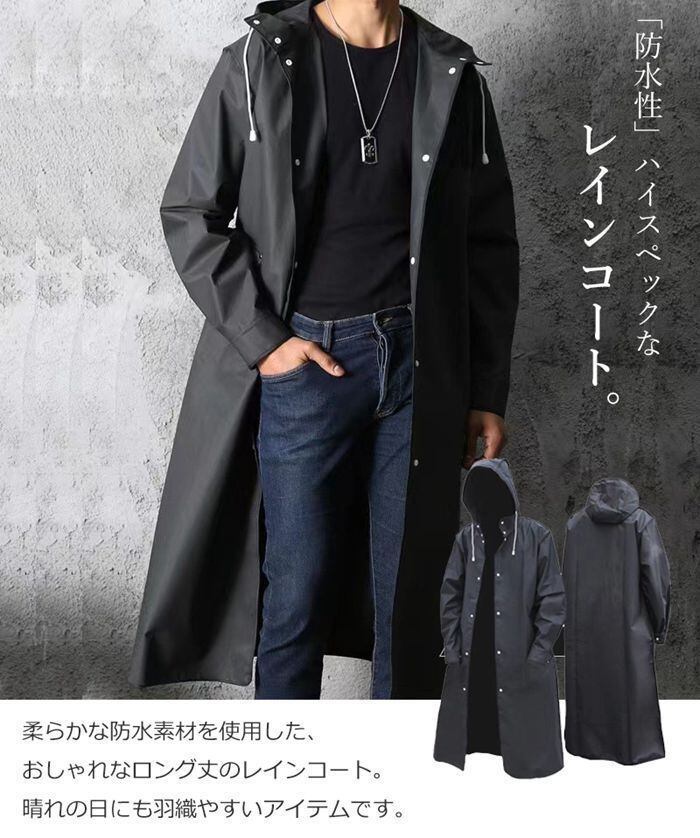 新品 レインコート 未使用 メンズ レディース ロング丈 防水 撥水 ロングコート アウター 徒歩 通勤 通学 レインウェア ビジネス おしゃれ カッパ 雨具 フード kkkfio