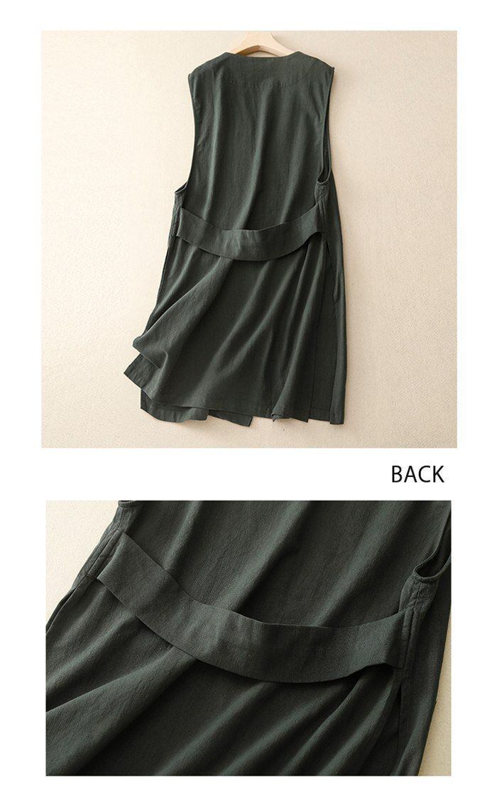 ロングジレ ジレ ロングベスト ベスト ノーカラー 綿麻 リネン風 大きいサイズ ゆったり 春夏 トレンチベスト 無地 ジレンチ トップス アウター コート 羽織り レイヤード ポケット スリット カジュアル Vネック 薄手 sushan01