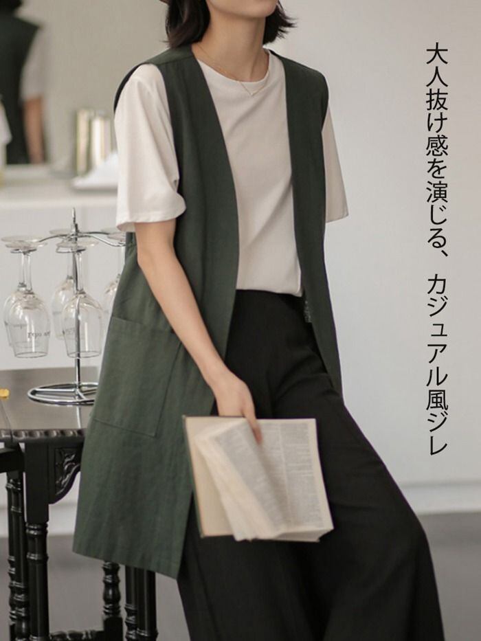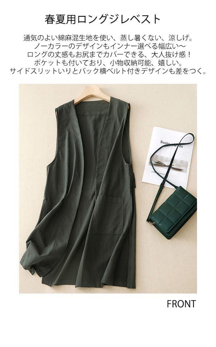 新品 ロングジレ ジレ ロングベスト ベスト ノーカラー 綿麻 リネン風 大きいサイズ ゆったり 春夏 トレンチベスト 無地 ジレンチ トップス アウター コート 羽織り レイヤード ポケット スリット カジュアル Vネック 薄手 kkkkhf