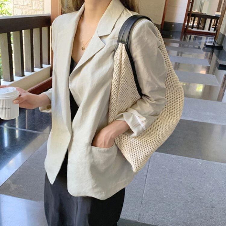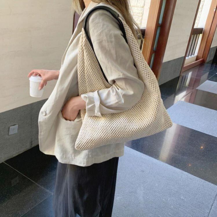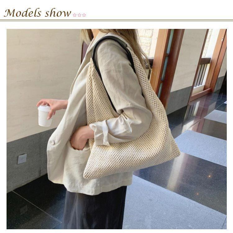 【特徴】夏のコーデに取り入れたい編みバッグ!開け口が大きく、中身が見やすく、取り出しも楽ちん♪
