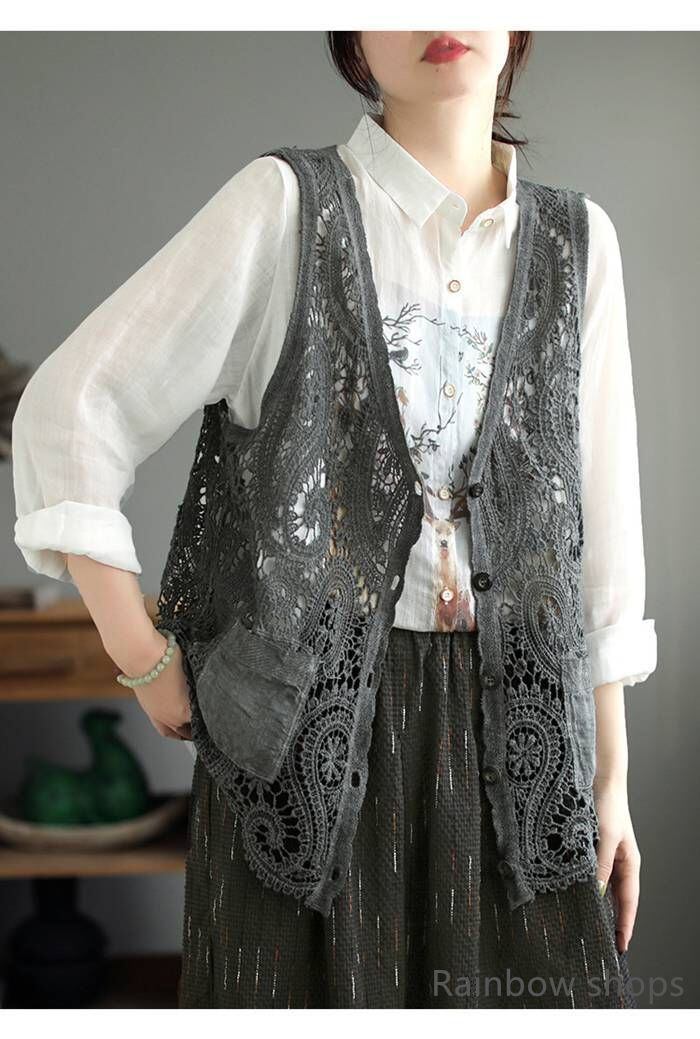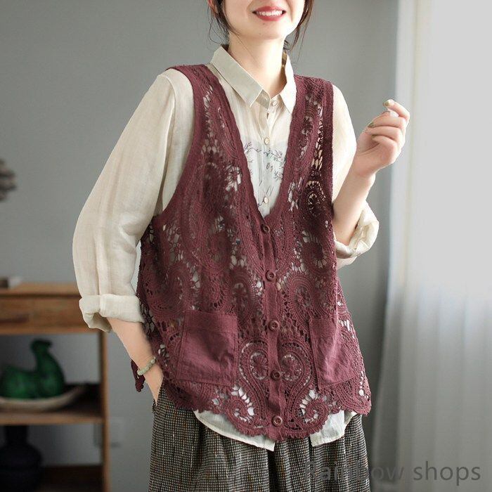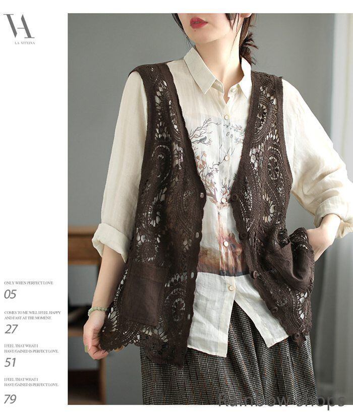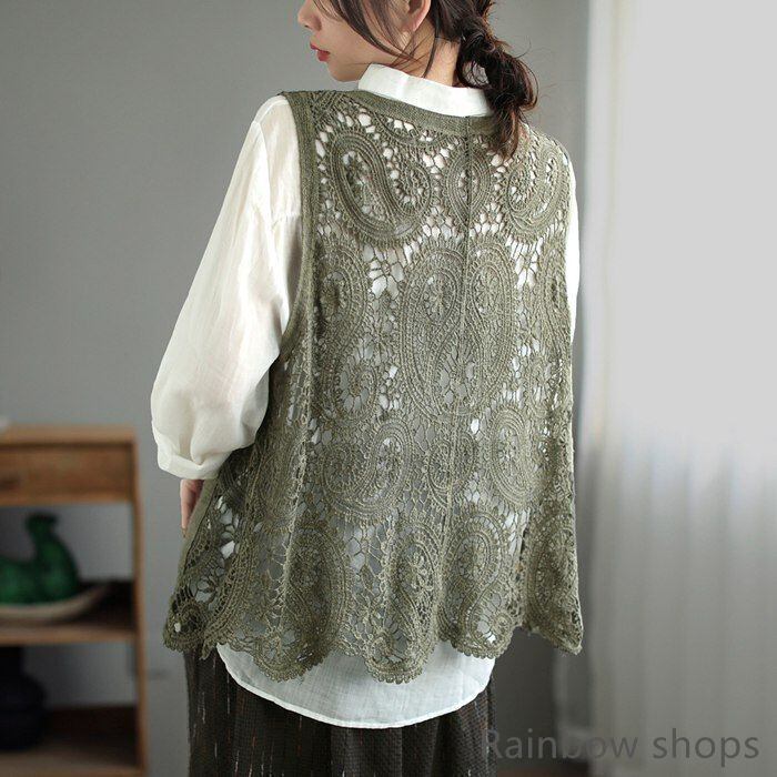 新品 ベスト レディース カーディガン トップス ノースリーブ 透かし編み ニットベスト 前開き クロシェ編み かぎ編み レース カーディガン ゆっ kkkzjv