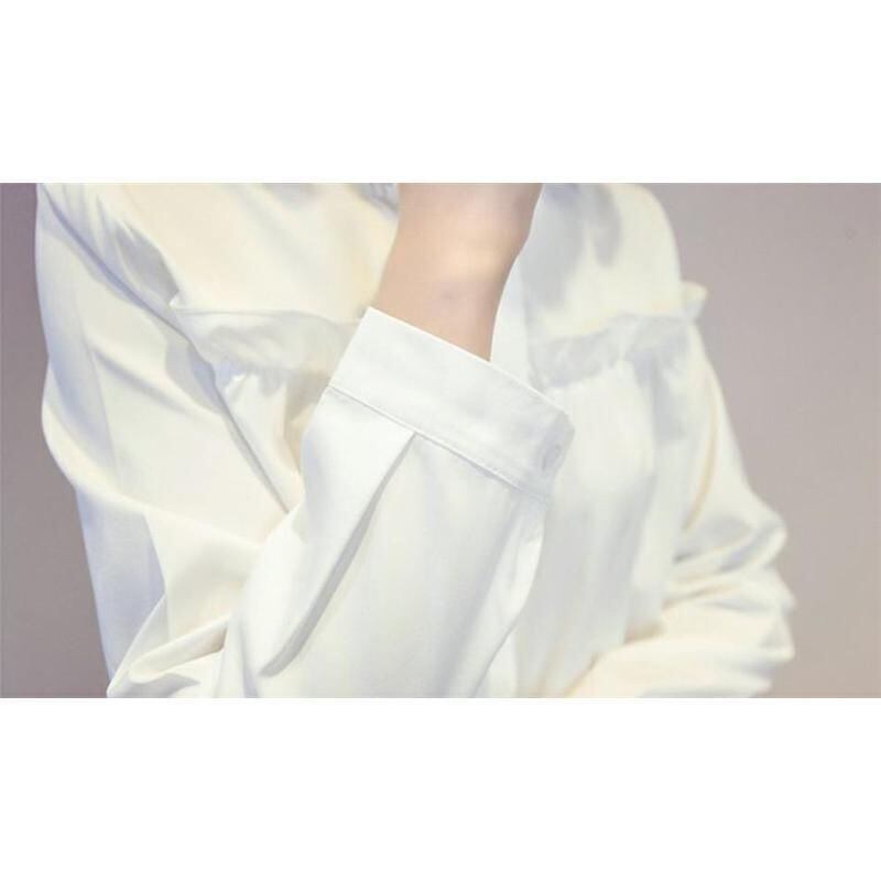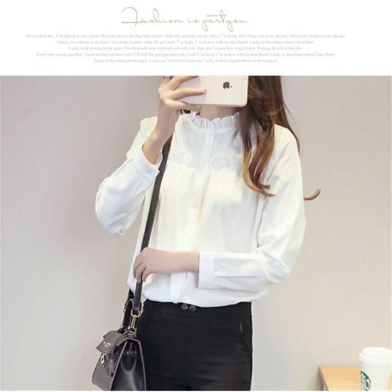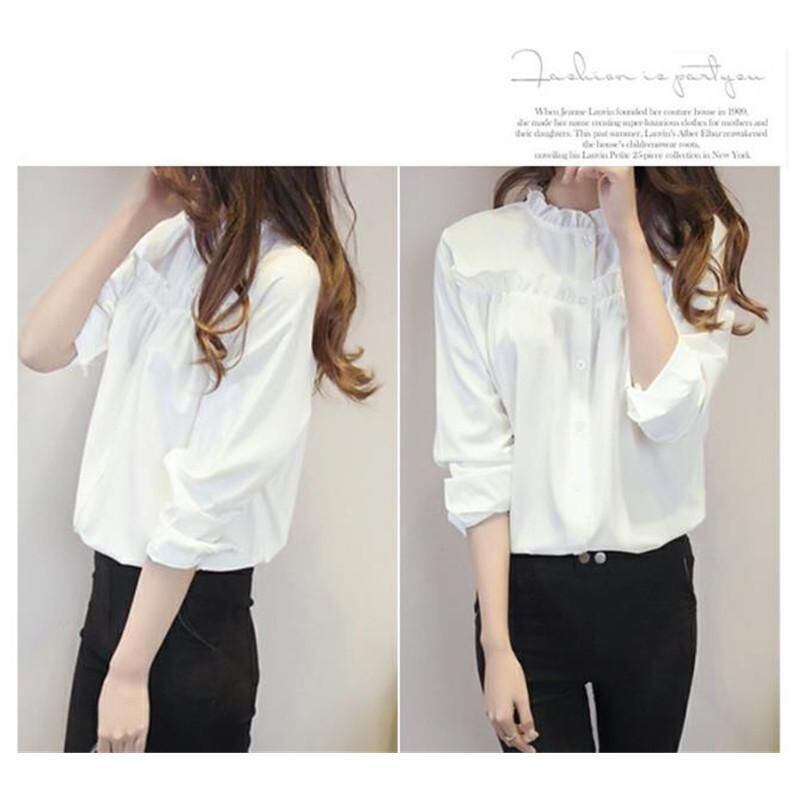 新品 シャツ ブラウス レディース トップス 長袖 綿 フリル フォーマル スタンドカラー フリルネック 白シャツ 着痩せ 通勤 OL 韓国風 おしゃれ kkkjtj