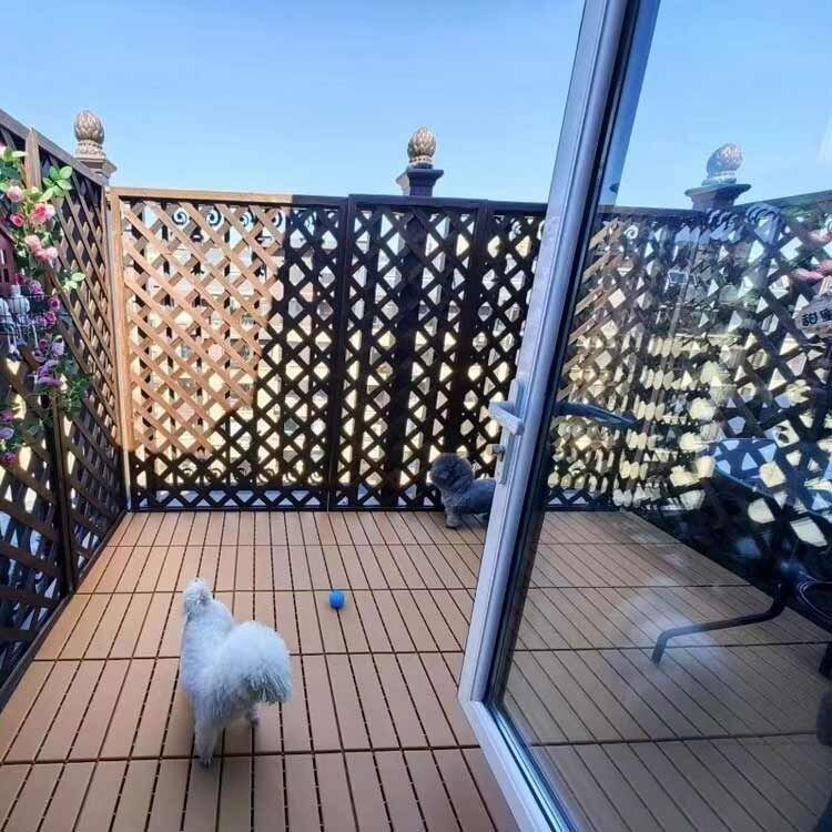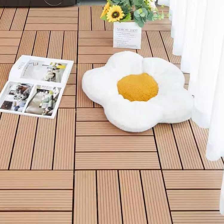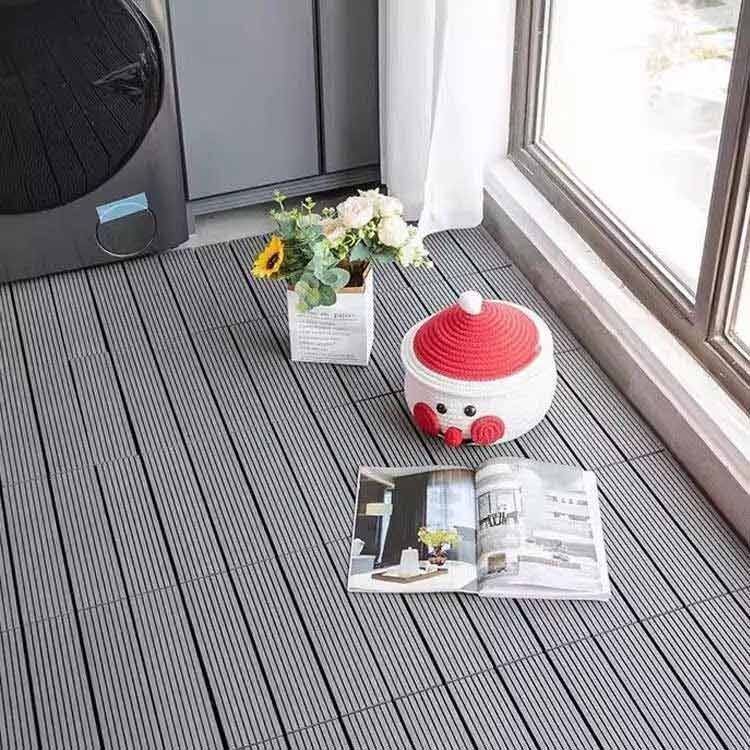 【気分次第の拡張利用も】ジョイントタイルは、ベランダや床、デッキなどの硬い平坦な表面に敷設することができ、スリッパなしの素足で使える。