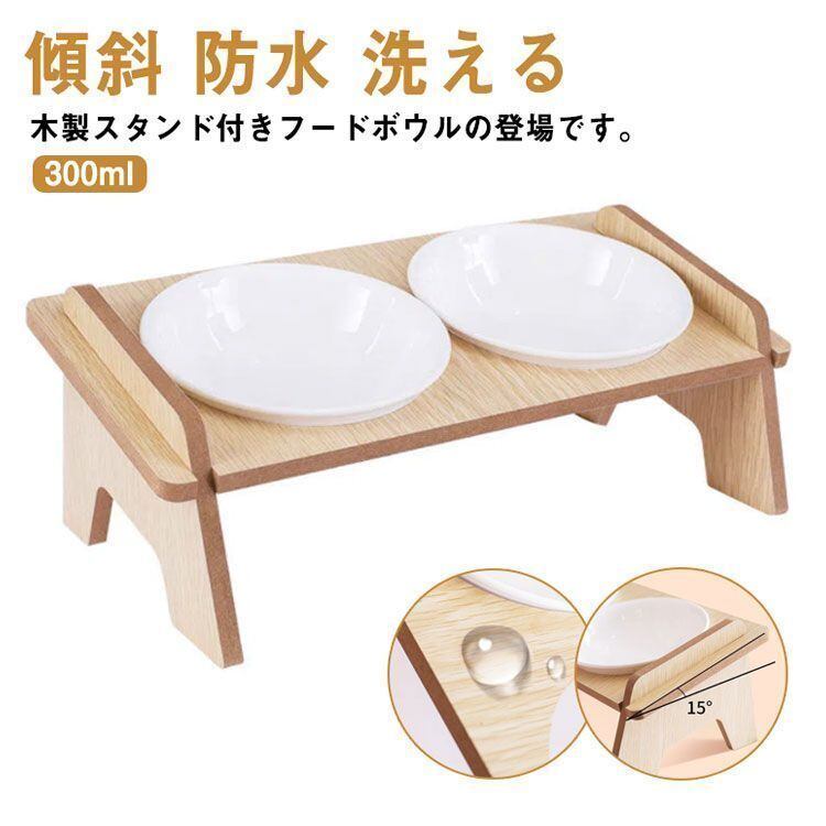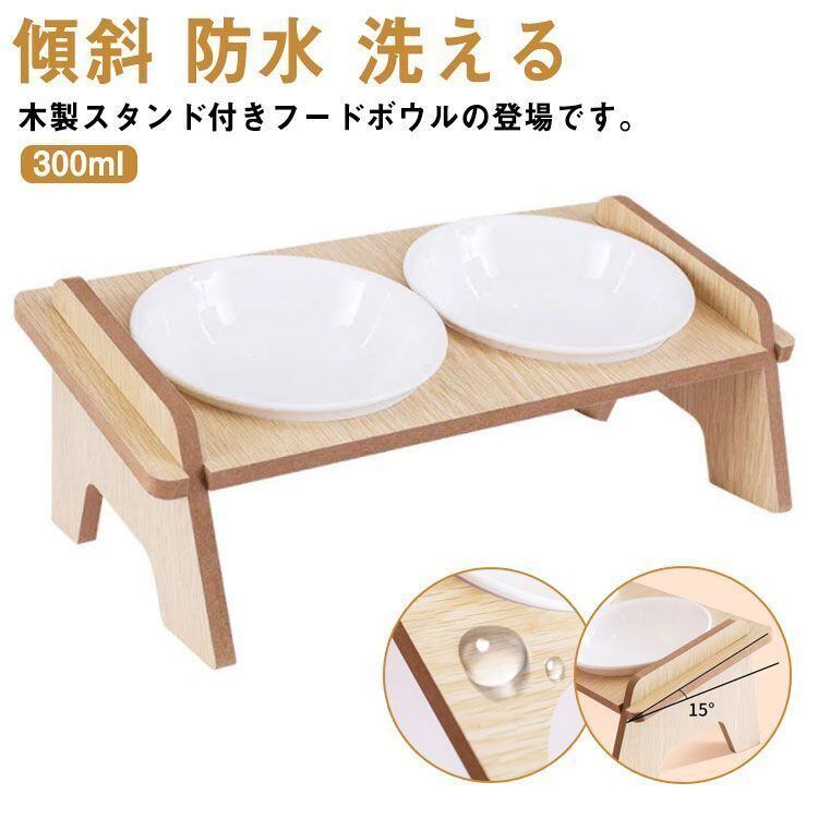 新品 食べやすい ペット食器台 犬 猫 陶器 傾斜 ペット食器台 フードボウル フードスタンド ダブルボウル ネコボウル 防水 お皿 餌入れ ごはん皿 水入れ 洗える エサ皿 かわいい おしゃれ kkkmrd