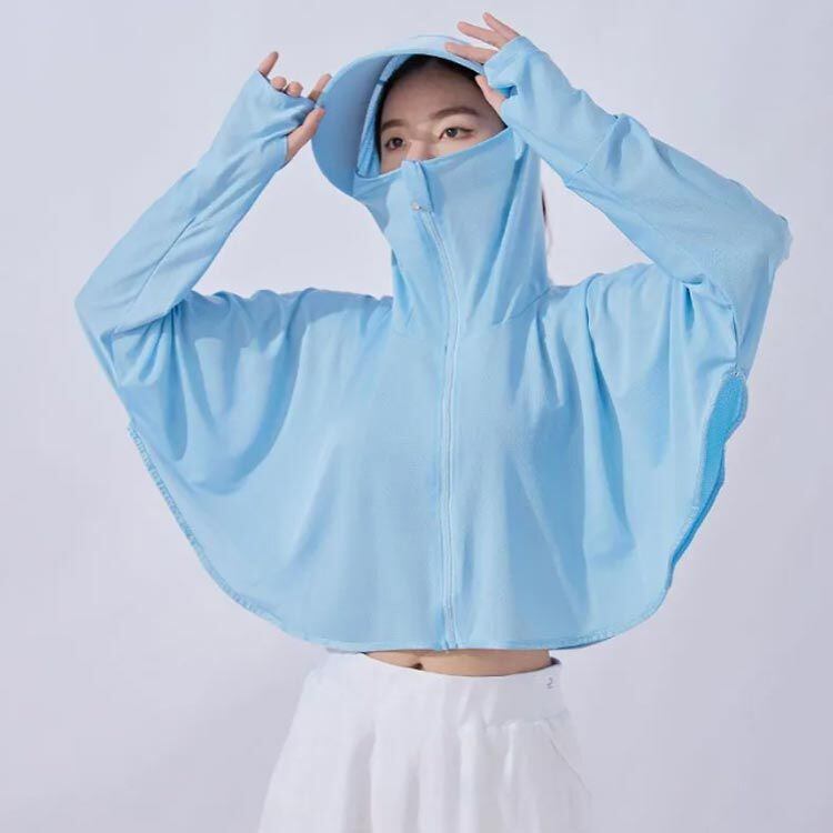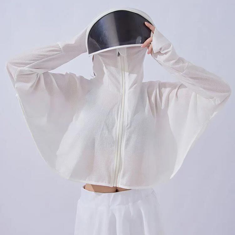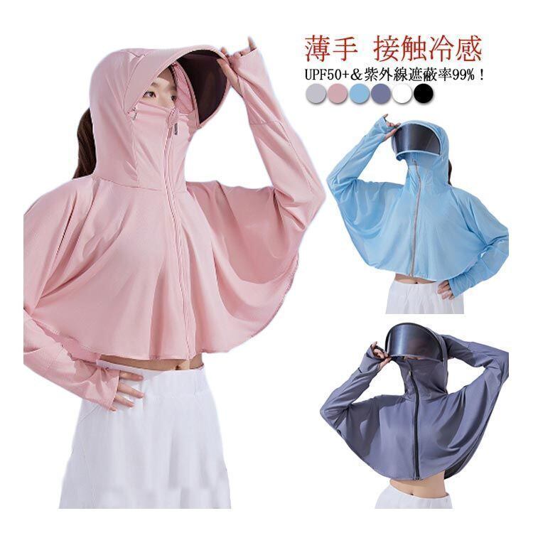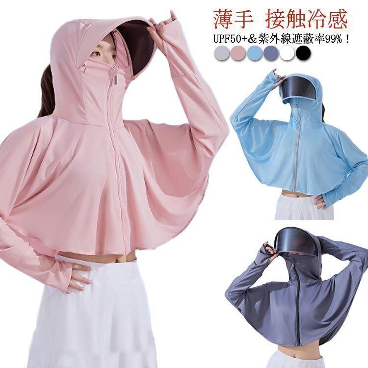 薄手で接触冷感!UPF50+&紫外線遮蔽率99%!フェイスカバー&ツバ付き!首や顔まで360度守れてくれる万能パーカー!真夏に欠かせないアイテム!
