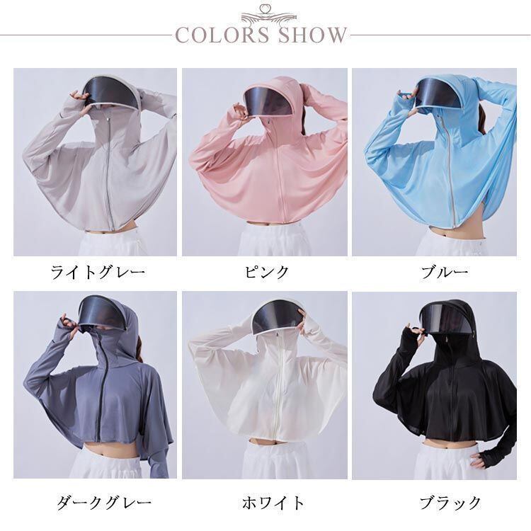 新品 UPF50+ UVカット パーカー 夏 レディース ポンチョ ラッシュガード ラッシュパーカー サンバイザー付き 体型カバー 取り外し可能 UV 薄手 接触冷感 パーカー つば付き 紫外線対策 長袖 kkkaov