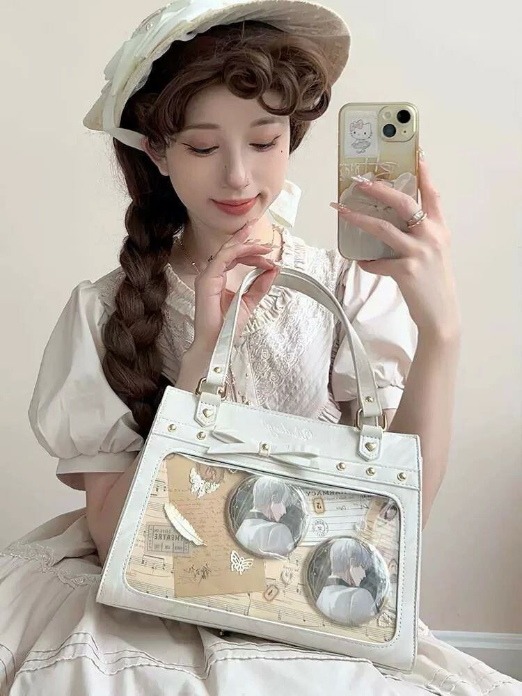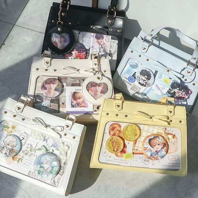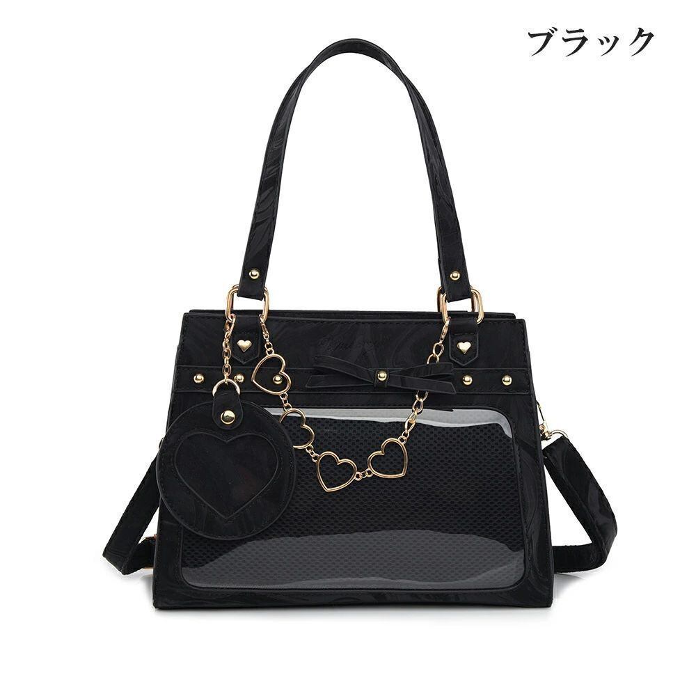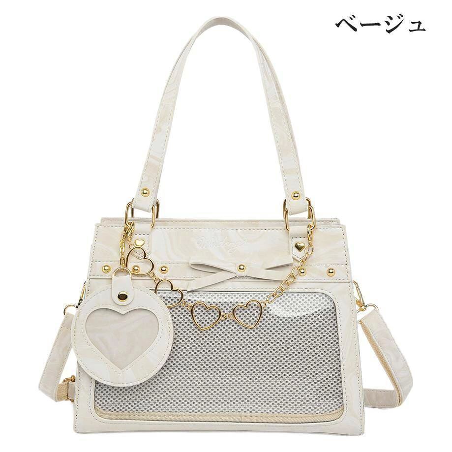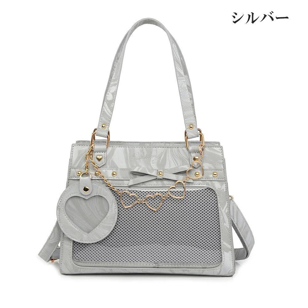 痛バッグ ショルダー トート マーブル柄 かわいい 痛バ ミニ 推し活バッグ 小さめ トートバッグ ショルダーバッグ 2WAY 痛バック 可愛い いたばっく いたば 推し活 バッグ ぬいぐるみ 鞄 リボン 黒 白 銀色 ピンク 人気 おしゃれ