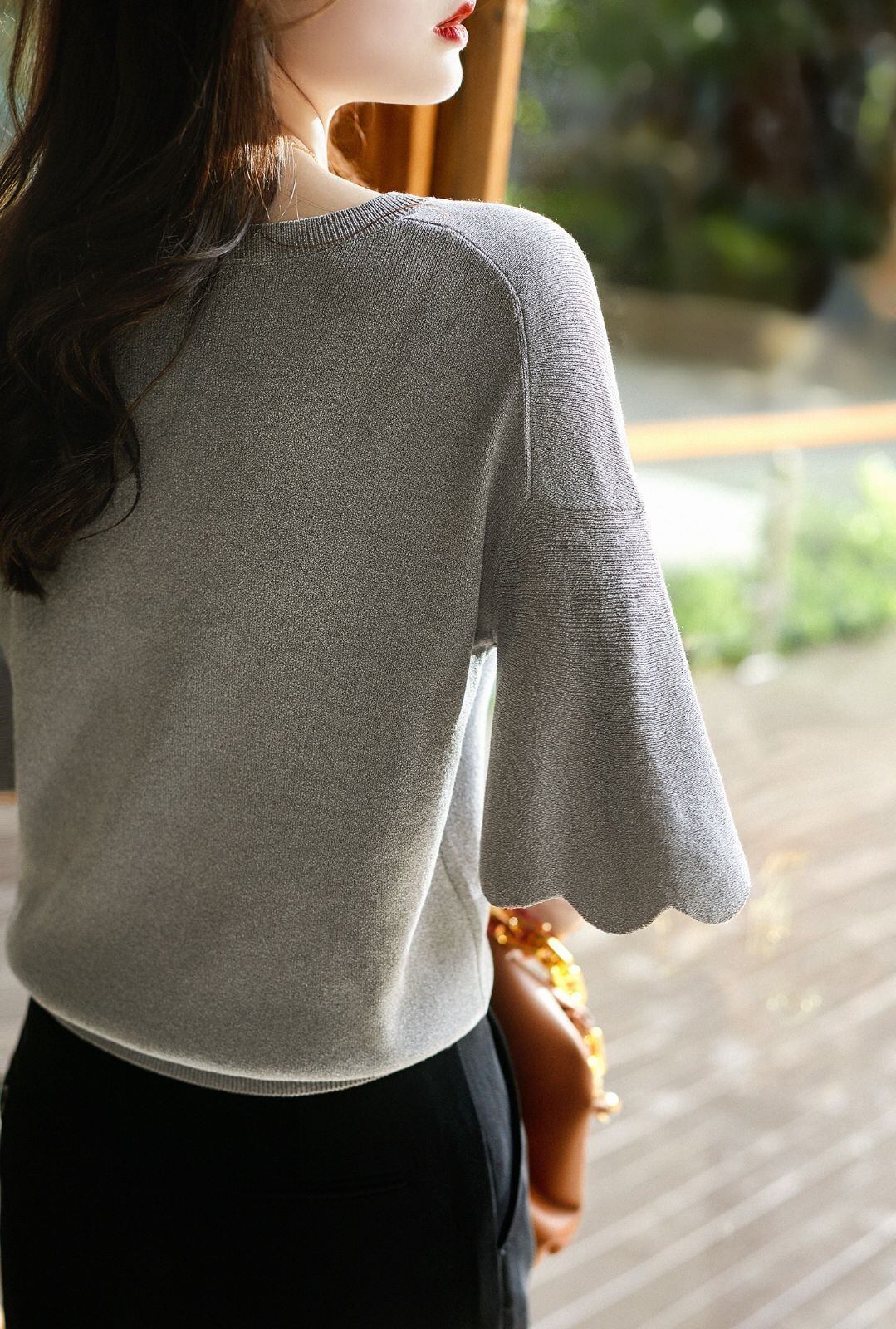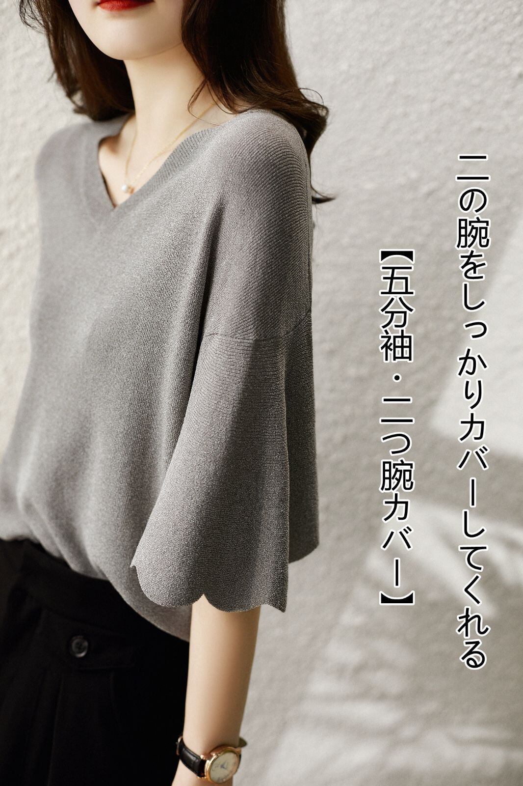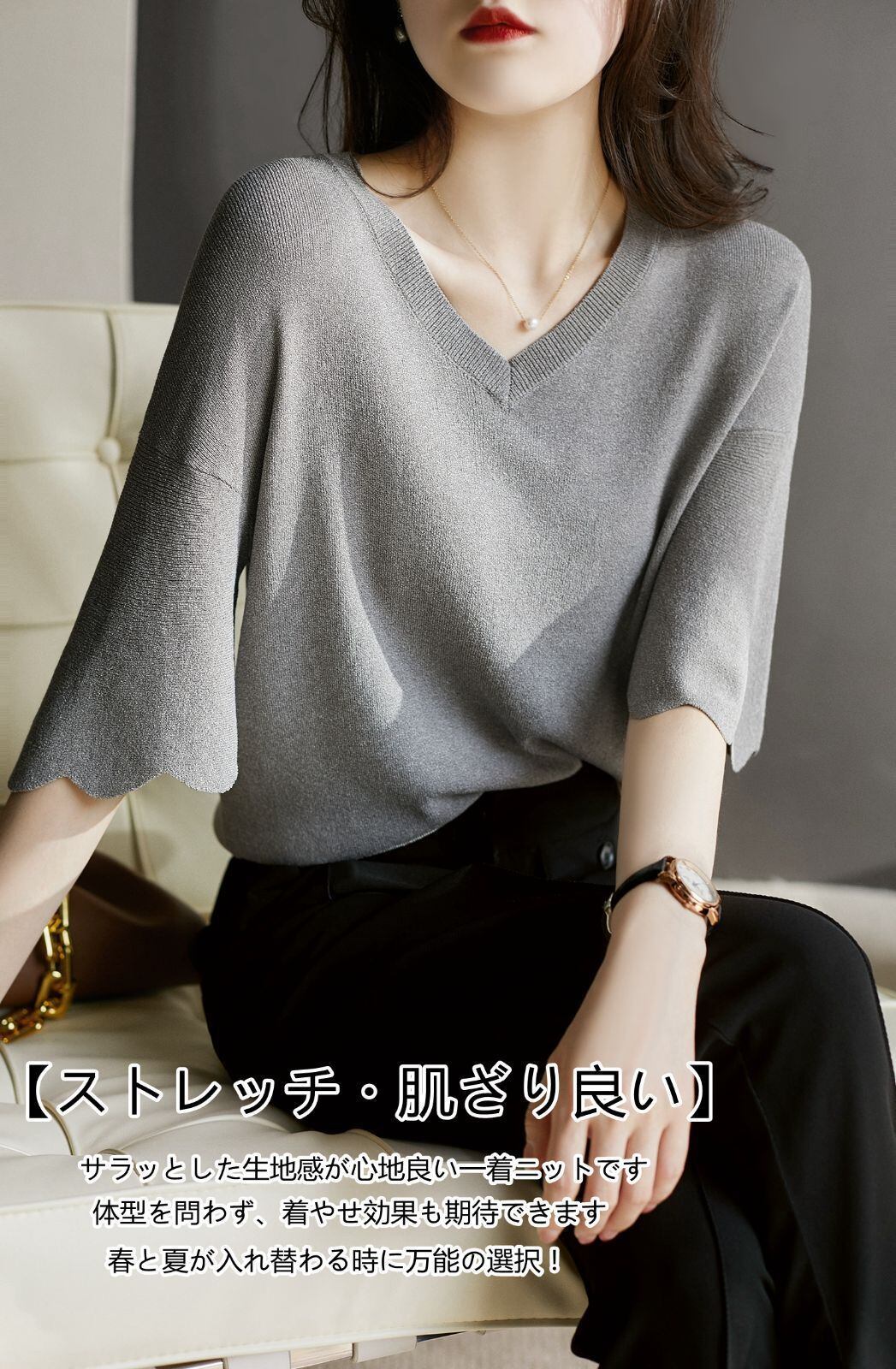 新品 サマーニット ニット Tシャツ カットソー 半袖 Vネック フレア袖 レディース トップス 半袖ニット シンプル 涼しい 無地 冷房対策 きれいめ オフィス カジュアル 20代 30代 40代 kkkilx