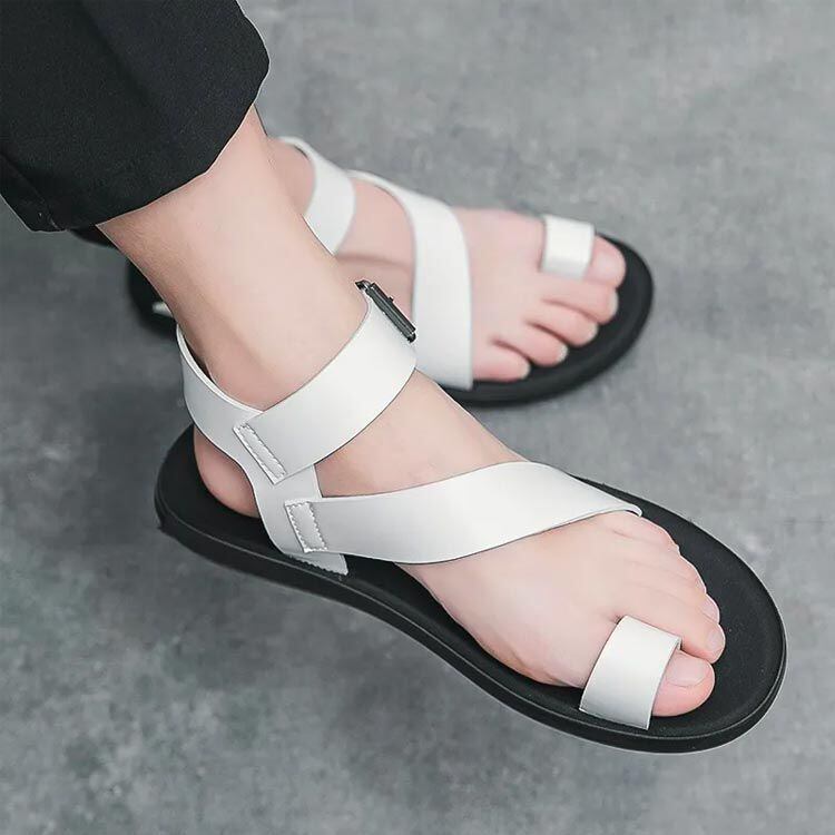 カジュアルから大人の着こなしにもばっちり合わせられる抜け感のあるレザーサンダル。