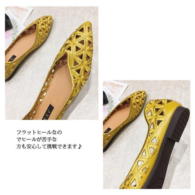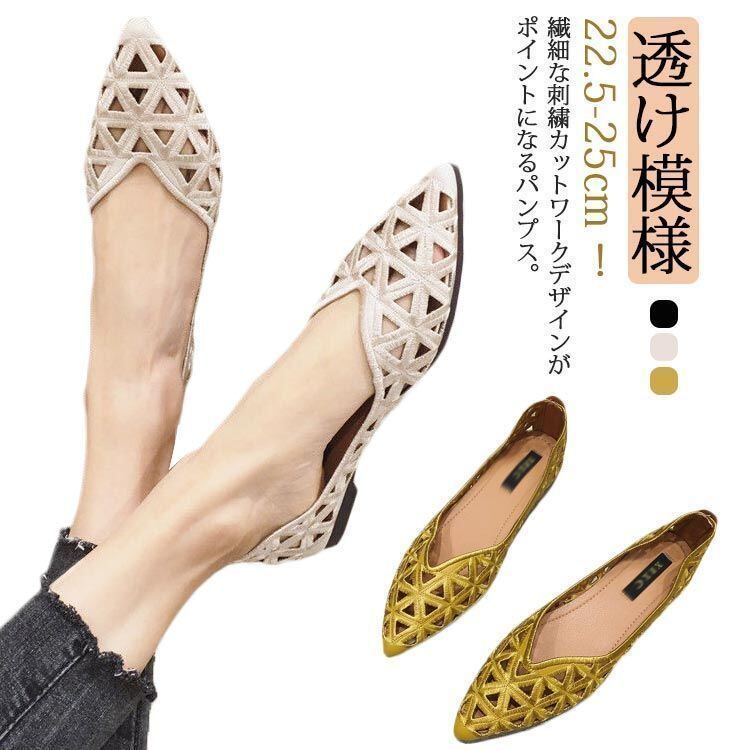 新品 パンプス ローヒール カットワーク 透かし模様 パンプス 痛くない ポインテッドトゥ ぺたんこ 走れる フラットパンプス フラットシューズ バレエシューズ 夏 合成皮革 刺繍 歩きやすい 柔らか 軽量 kkkrqh
