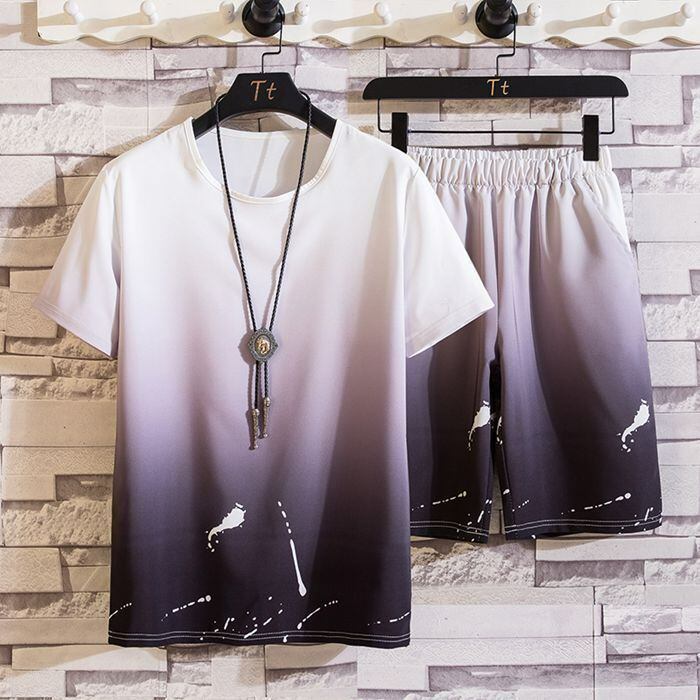 新品 セットアップ 上下セット メンズ 接触冷感 グラデーション 2点セット スポーツウェア 運動 通学 Tシャツ ハーフパンツ 半袖 メンズ 夏 ルームウェア kkkose