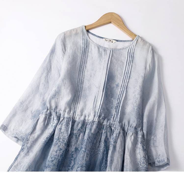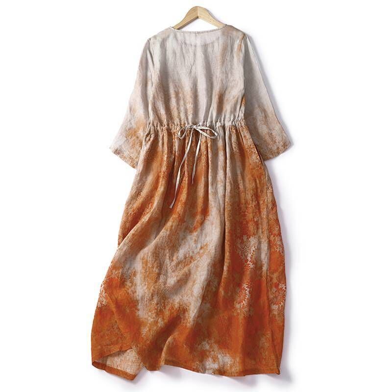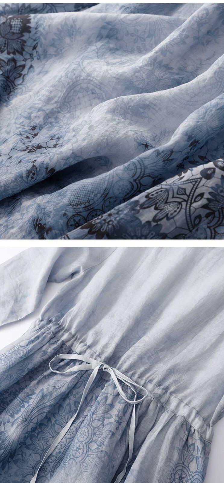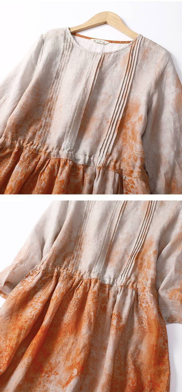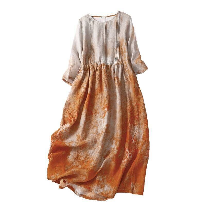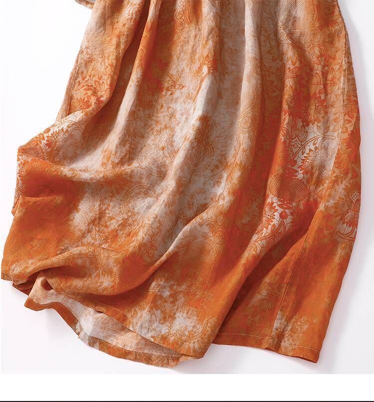 新品 リゾートワンピース エスニック リネンワンピース レディース 夏服 ワンピース 5分袖 丸首 総柄 花柄 ギャザー フレア aライン 30代40代50代 大人可愛い 綿麻 kkkoxa
