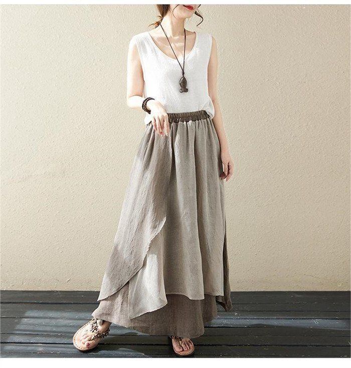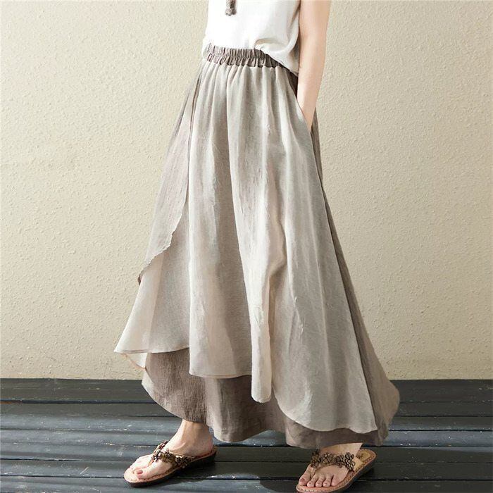 新品 フレアスカート 夏 レディース リネン コットン ロングスカート アシメ スカート 春夏 綿麻風スカート ボトムス キレイめ 体型カバー ウエストゴム ナチュラル 森ガール ゆったり エレガント 爽やか 大人可愛い kkkwzl