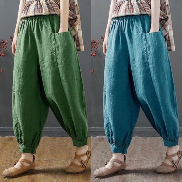 吸湿性、保湿性、 通気性の綿麻生地を使用したワイドパンツ。