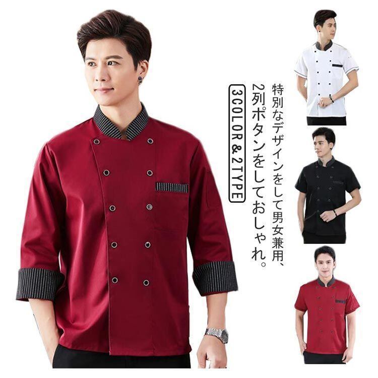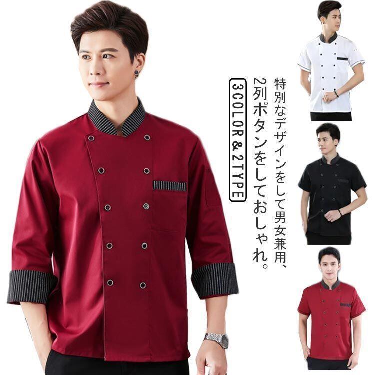 新品 コックコート 半袖 長袖 男女兼用 コックシャツ 調理服 厨房服 コック服 シェフ服 飲食店 厨房 レストラン カフェ シェフ ユニフォーム キ kkklck